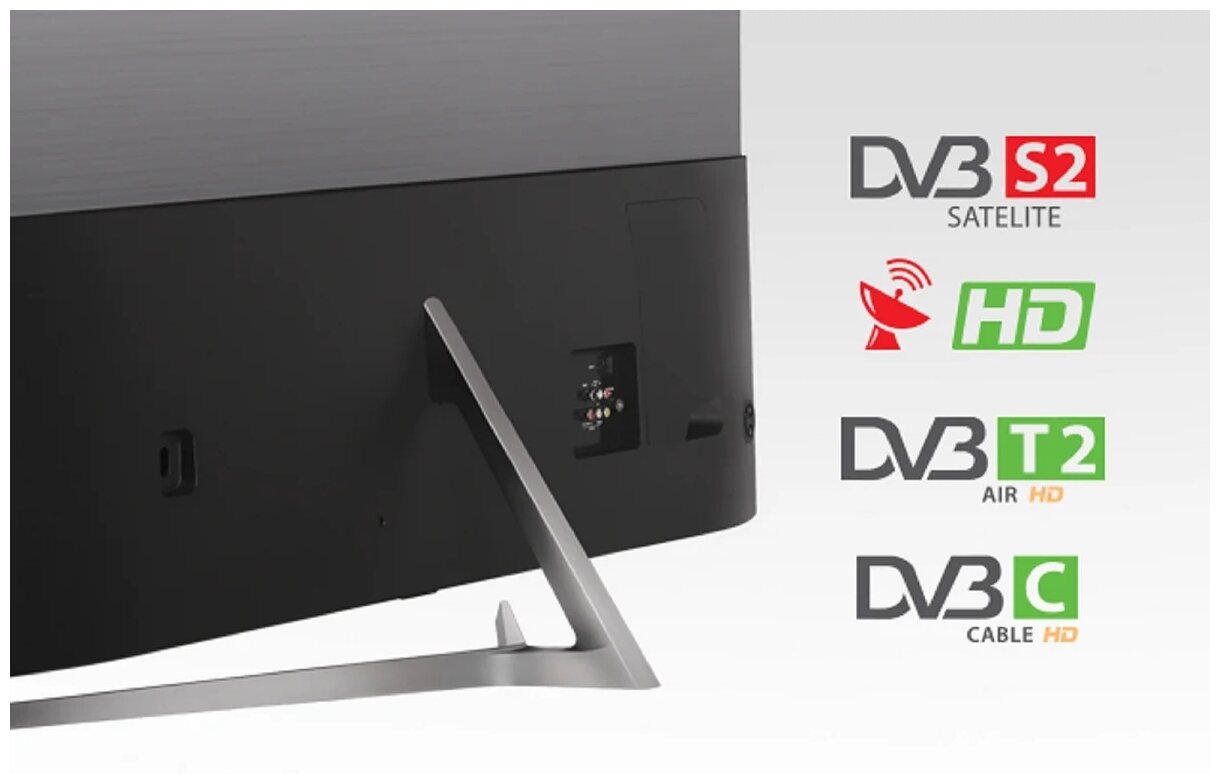Дополнительная информациятип: AndroidTV, версия системы: 9.0, подключение Wi-Fi, LAN - есть, запись цифрового эфира PVR - есть, встроенные тюнеры – есть, система шумоподавления – есть, LED подсветка – есть, многоязыковое меню – есть, функция Time Shift (живая пауза) – есть, родительский контроль – есть, поддержка голосового поиска с ПДУ – есть; ТЕЛЕВЕЩАНИЕ: вход для антенны и кабельного ТВ: (DVB-T/C)/(DVB-S/S2) 1/1 ATV, поддержка видео форматов PAL/SECAM DTV поддержка видео форматов MPEG-2 H.264, встроенный цифровой тюнер DVB-T/Т2, встроенный спутниковый тюнер DVB-S/S2, слот для карты CI, CI+ Есть; ПОДКЛЮЧЕНИЕ: вход / выход HDMI, шт. 2,0, вход USB 2,0, композитный вход AV mini AV Аудио, выход для подключения наушников – есть, Digital Audio выход OPTICAL, ЭНЕРГОПОТРЕБЛЕНИЕ: энергопотребление в режиме ожидания, Вт <, 0,5, источник питания 110-240 В, 50/60 Гц; габаритные размеры упаковки (В х Ш х Г), мм 478 х 763 х 97, вес с упаковкой, кг 5,4