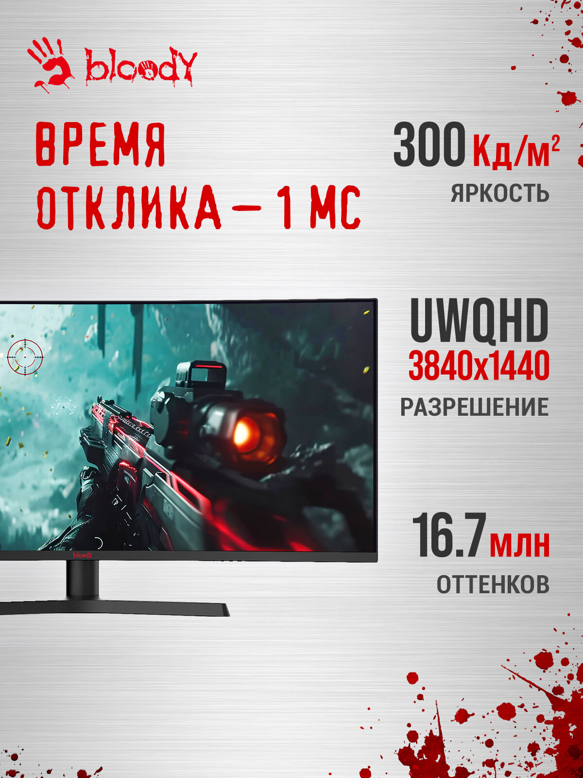 Подготовьтесь к новым победам с монитором Bloody MN340W! Он станет вашим надежным союзником в мире виртуальных развлечений, обеспечивая превосходное качество изображения и невероятный игровой опыт. Откройте для себя новые горизонты гейминга с этим великолепным монитором.