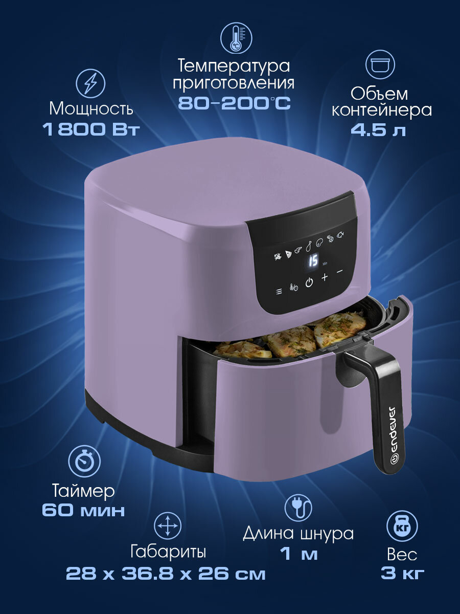 Почувствуйте себя шеф-поваром на своей кухне! С аэрогрилем Endever AF-127 вы сможете легко и быстро приготовить хрустящую картошку фри, сочное мясо, ароматную выпечку и многое другое. Радуйте себя и своих близких вкусными и полезными блюдами каждый день!