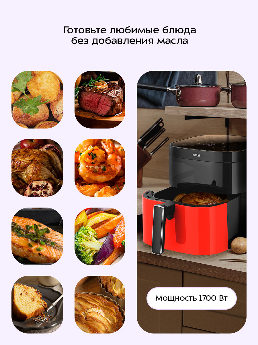 Сэкономьте время и силы на приготовлении пищи с аэрогрилем Kitfort KT-2291. Этот многофункциональный прибор станет вашим надежным помощником на кухне, позволяя готовить разнообразные блюда быстро, легко и с пользой для здоровья. Порадуйте себя и своих близких вкусными и здоровыми кулинарными шедеврами!