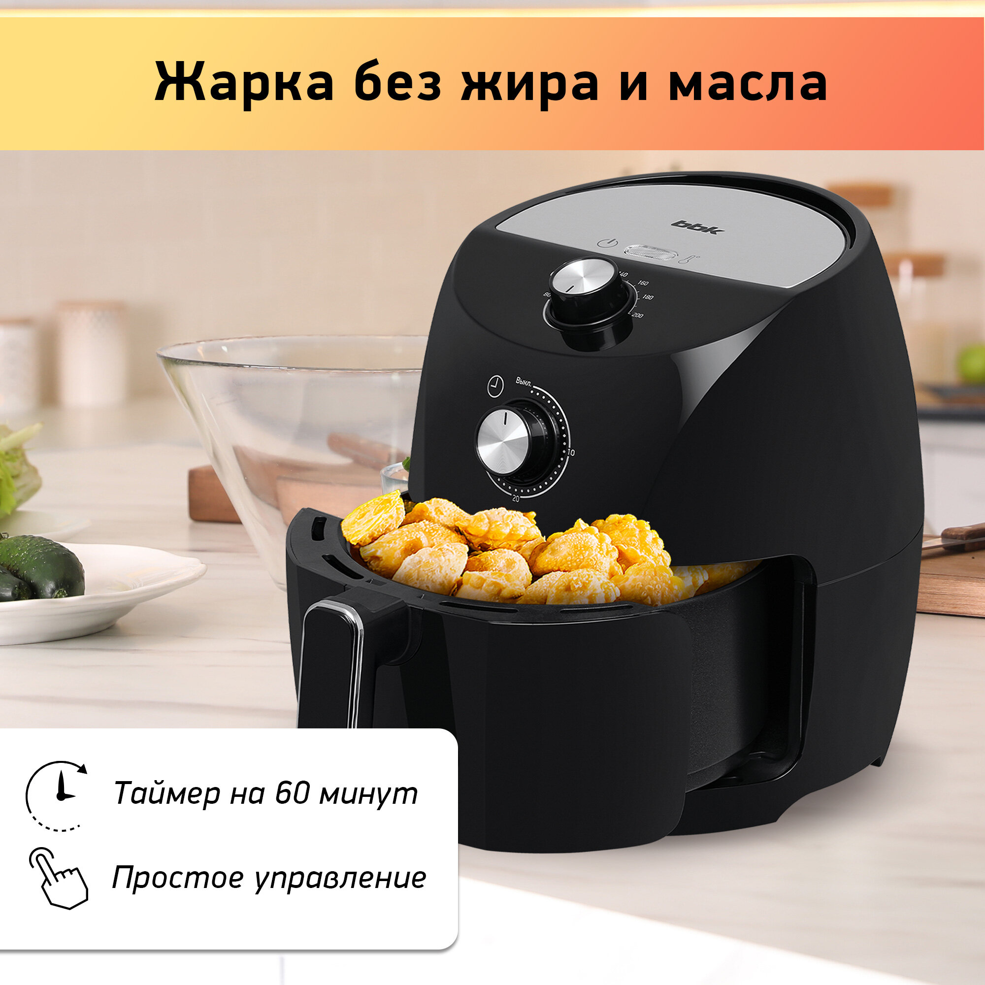 Забудьте о долгом стоянии у плиты и сложных кулинарных процессах. С аэрогрилем BBK AF325 приготовление вкусной и здоровой пищи станет быстрым, легким и приятным. Наслаждайтесь любимыми блюдами без лишнего жира и калорий, заботясь о своем здоровье и фигуре.