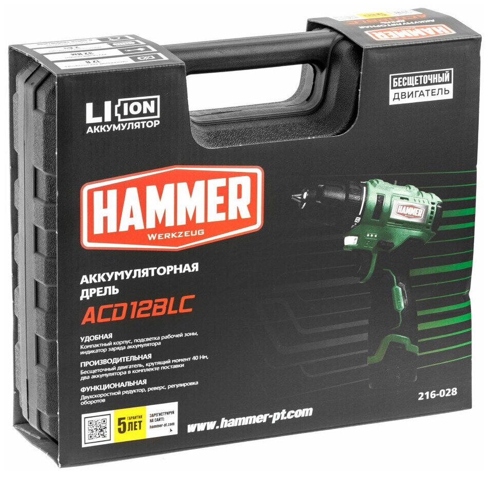 Аккум. дрель Hammer ACD12BLC 12В 2х2 Ач 10мм 0-400/0-1350об/мин 32Нм в кейсе