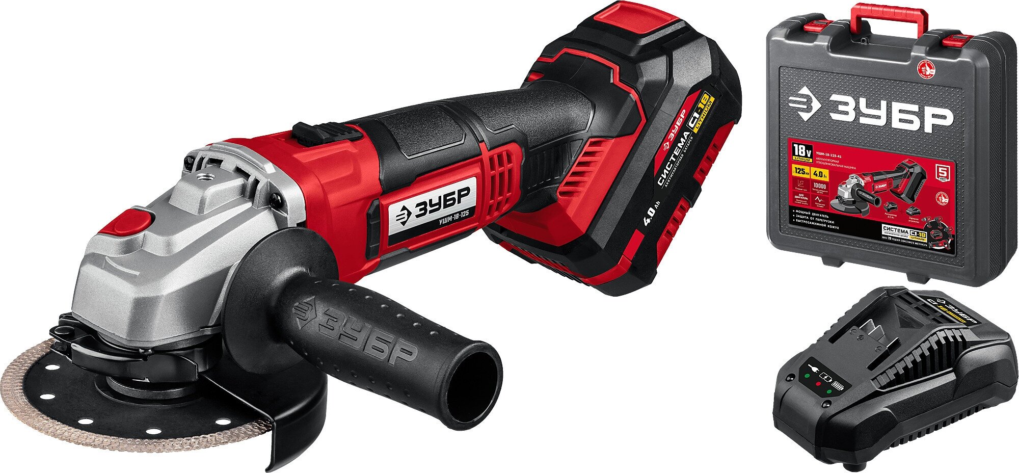 Преимущества аккумуляторной угловой шлифмашины ЗУБР УШМ-18-125-41-1: