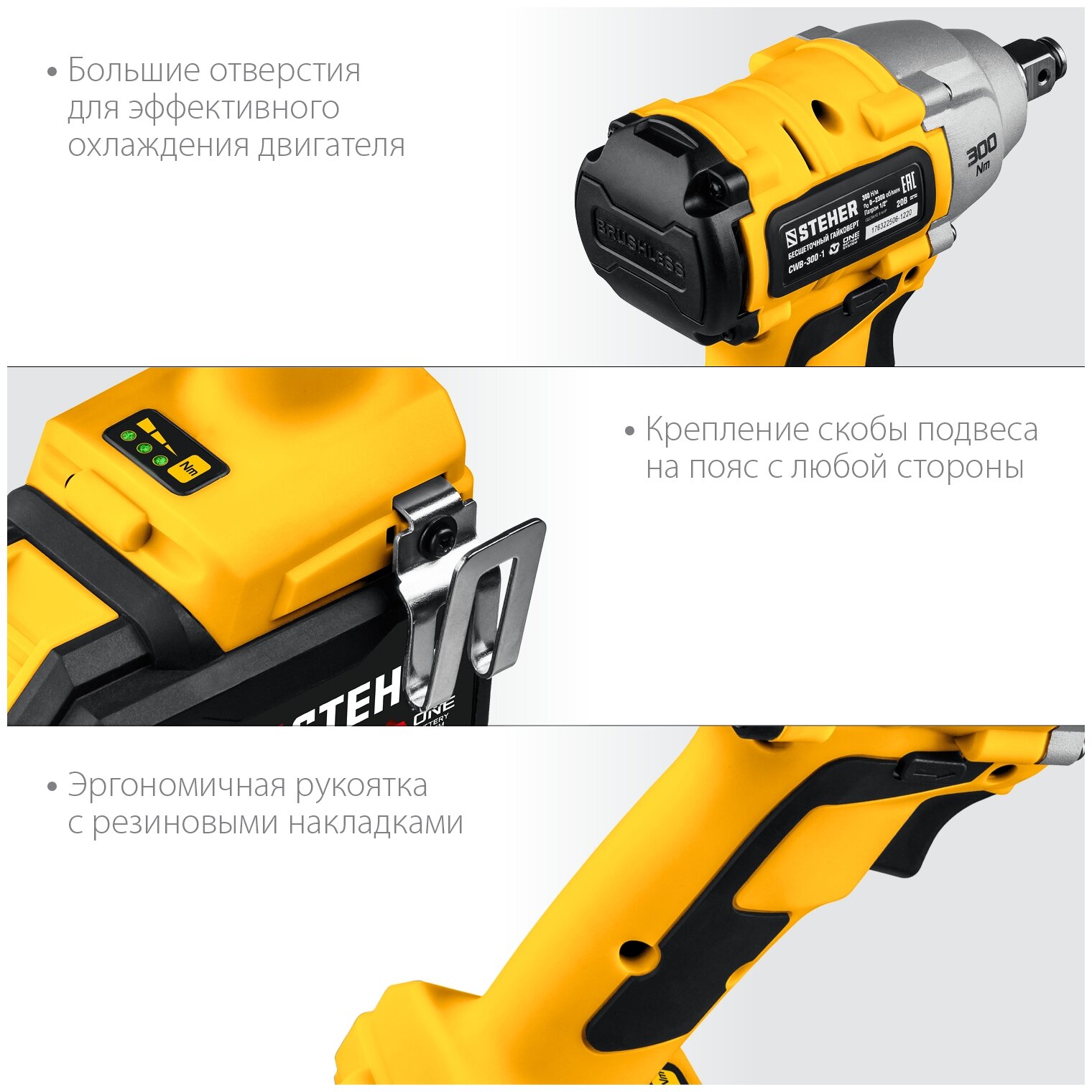 STEHER CWB-300-1 – это инструмент, который создан для профессионалов и любителей, ценящих качество, надежность и комфорт. Он станет незаменимым помощником при ремонте автомобиля, сборке мебели, монтаже конструкций и других работах, требующих мощного и портативного гайковерта.