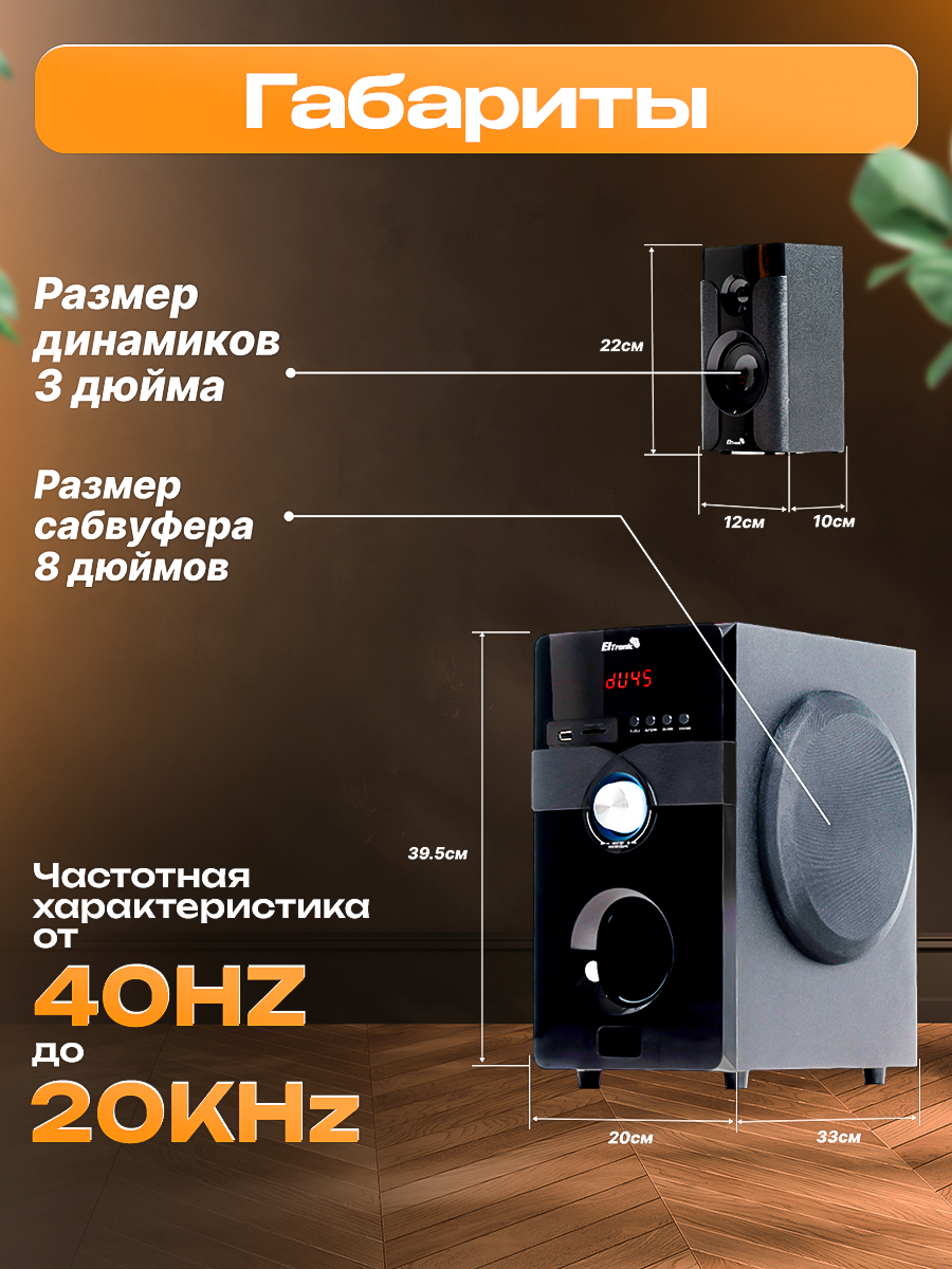 Превратите свой дом в настоящий кинотеатр или концертный зал с акустической системой Eltronic 3420 5.1 Home Sound! Эта мощная и стильная система обеспечит вам незабываемое звучание и позволит насладиться любимой музыкой, фильмами и играми с совершенно новым уровнем погружения.