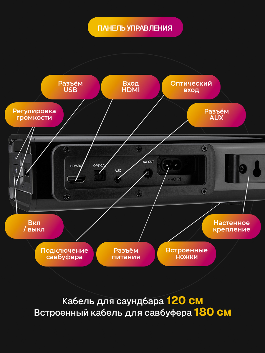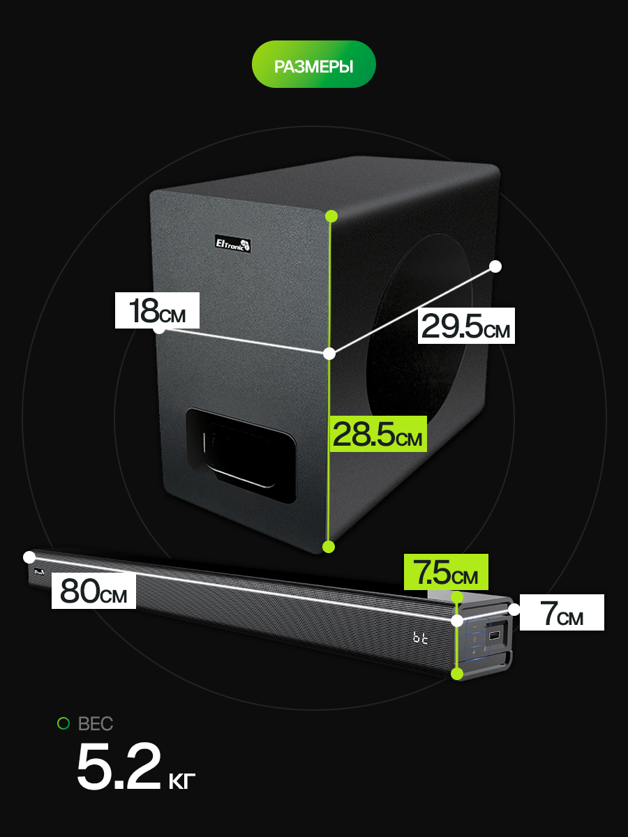 Преобразите свою домашнюю аудиосистему с Eltronic Soundbar 2.1 и наслаждайтесь каждым звуком. Закажите прямо сейчас и ощутите разницу!