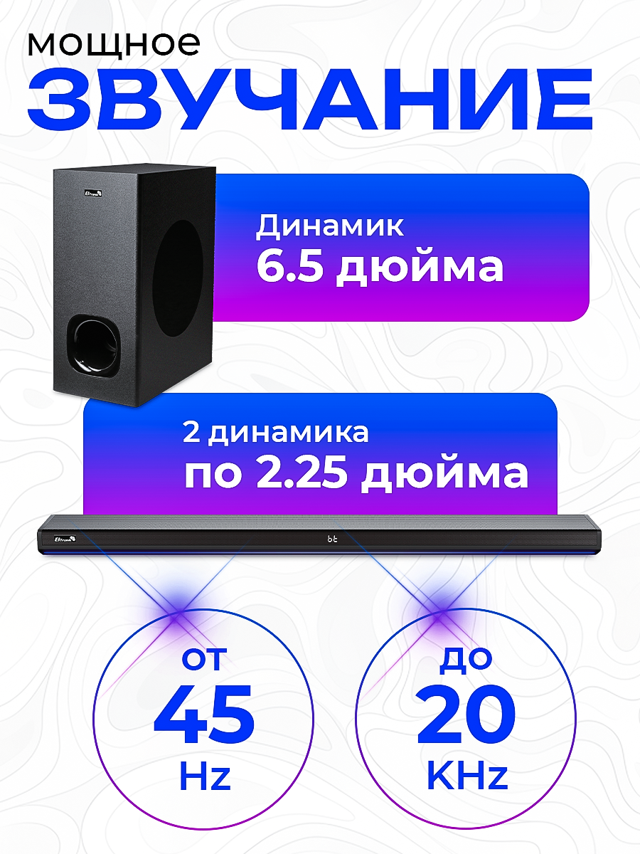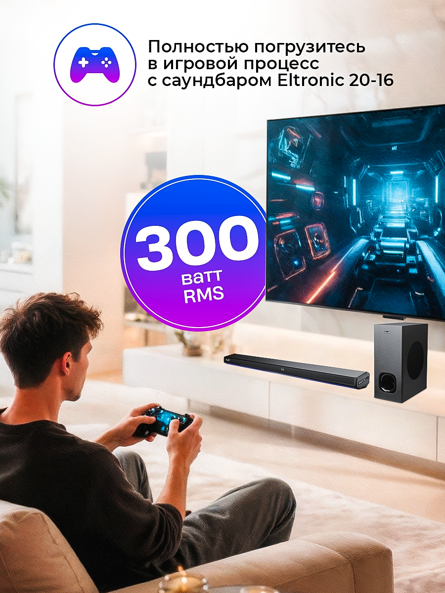 Eltronic Soundbar 2.1 – это не просто акустическая система, это инвестиция в ваш комфорт и удовольствие. Позвольте себе наслаждаться качественным звуком каждый день!