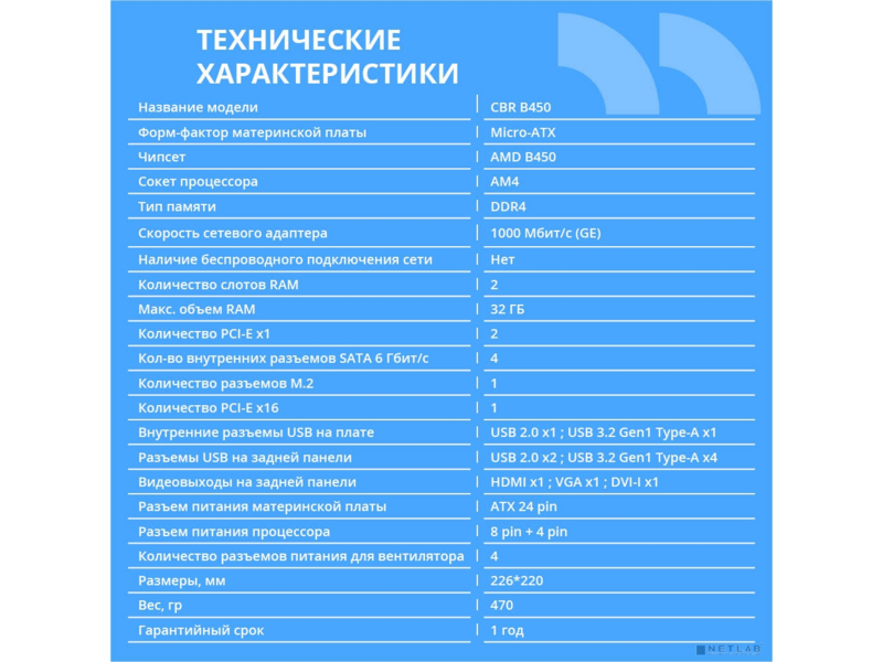 Материнская плата B450 OEM – это надежное и функциональное решение для создания производительной системы на базе процессоров AMD Socket AM4. Предназначенная для сборки компьютеров различного назначения, эта плата формата mATX сочетает в себе необходимые интерфейсы и слоты расширения.