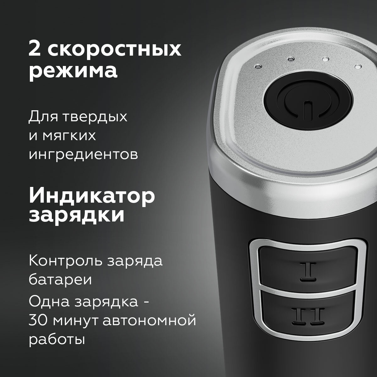 Этот беспроводной блендер сочетает в себе мощность и компактность, обеспечивая эффективное измельчение и смешивание ингредиентов. С его помощью вы легко приготовите смузи, супы-пюре, соусы, детское питание и многое другое. Интуитивно понятное управление и несколько режимов работы позволяют адаптировать прибор под любые кулинарные задачи.