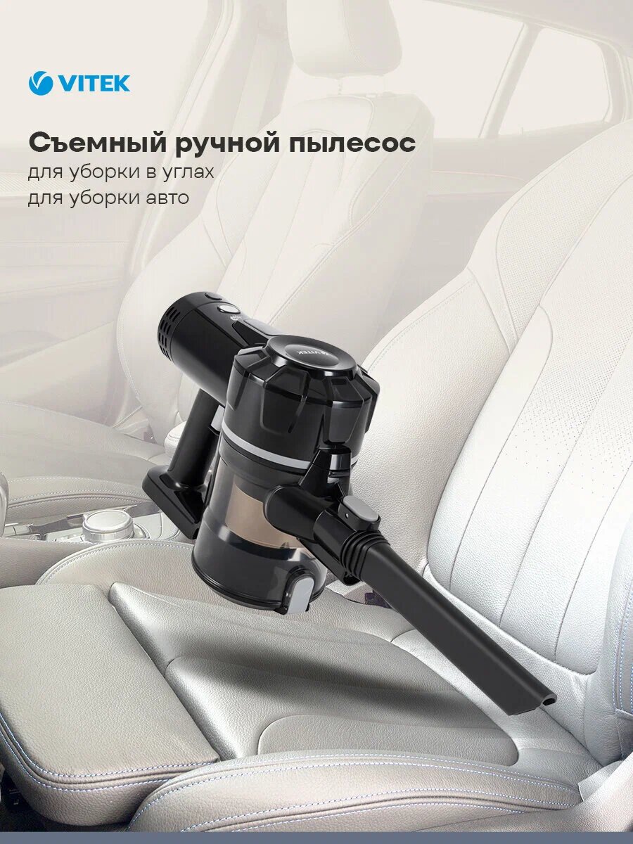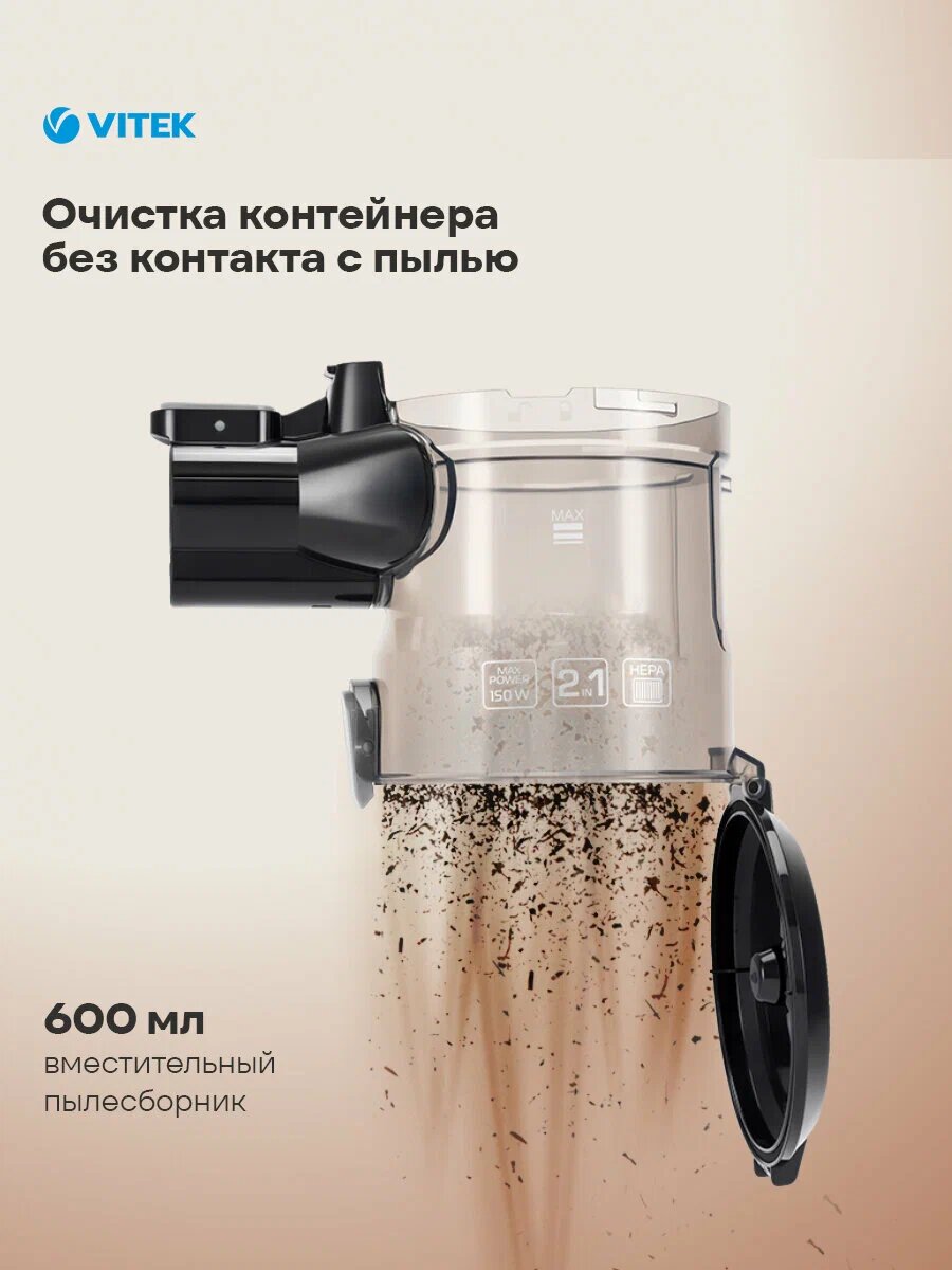 Vitek Starlight VT-8143 легко трансформируется в ручной пылесос, что позволяет быстро убирать крошки со стола, пыль с полок или салон автомобиля. Это универсальное решение для поддержания чистоты не только в доме, но и за его пределами.
