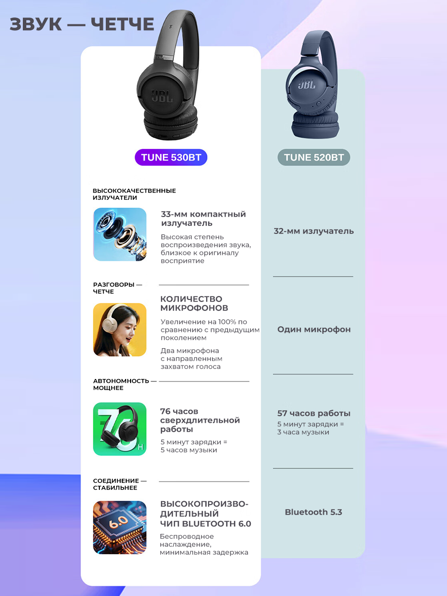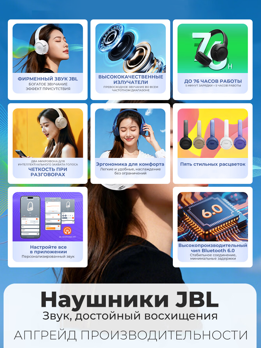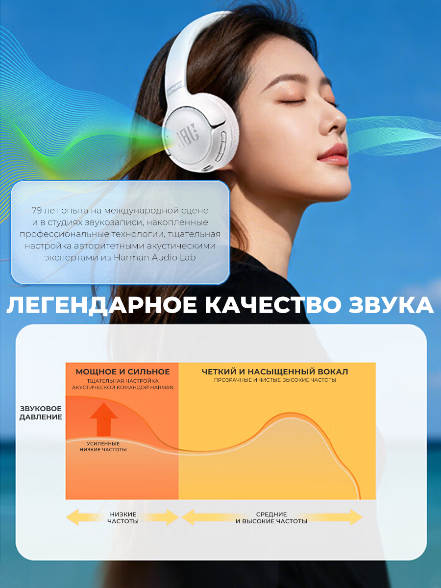 JBL Tune 530BT – это не просто наушники, это ваш личный портал в мир звука. Почувствуйте мощь и глубину каждой ноты, наслаждайтесь кристально чистыми высокими и насыщенными низкими частотами.
