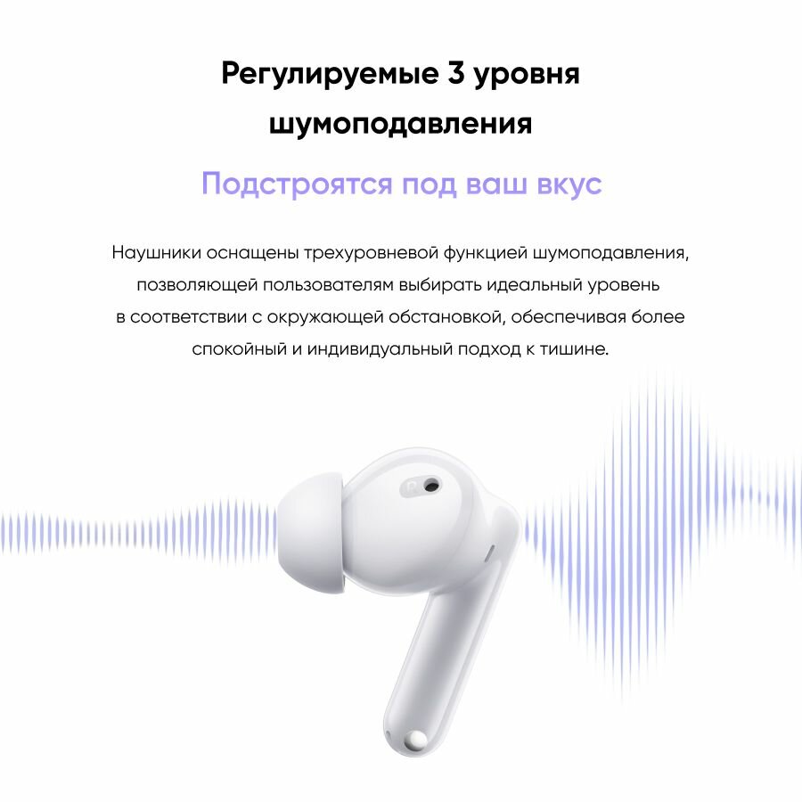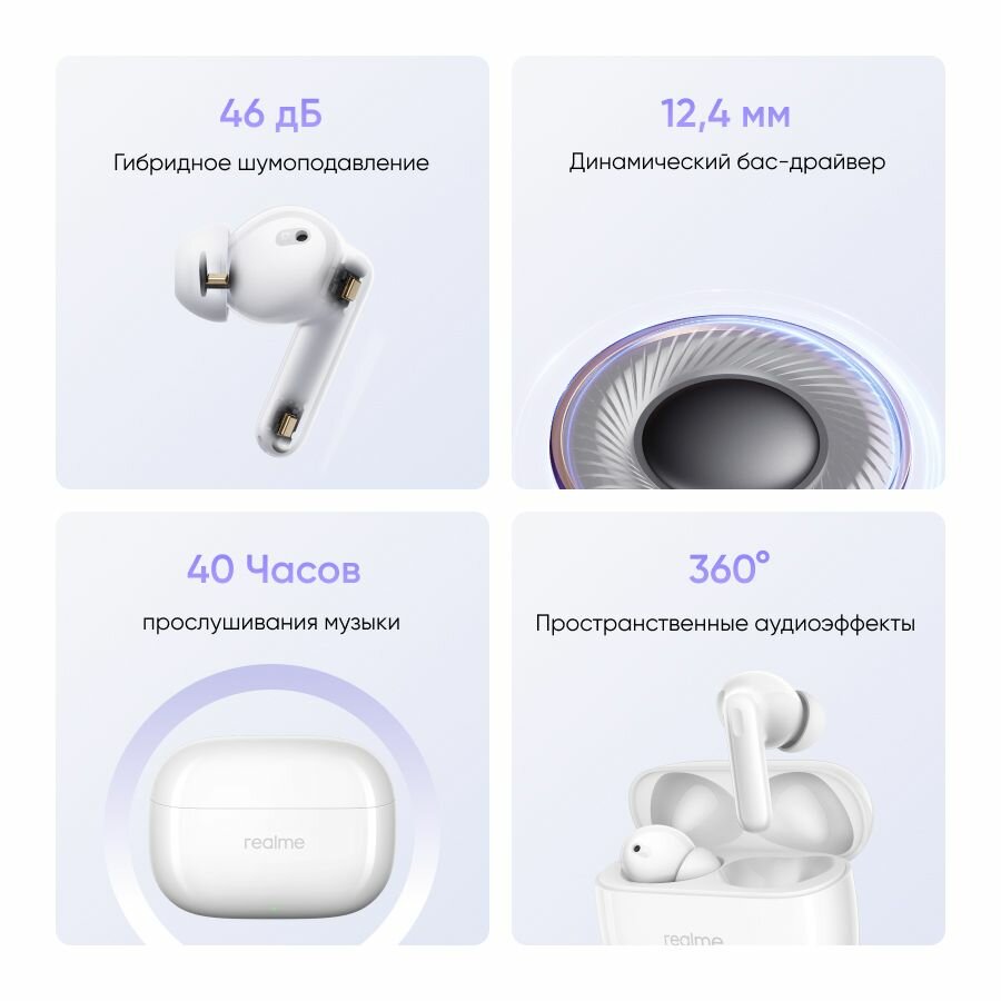 Оцените свободу движения без спутанных проводов и наслаждайтесь чистым и мощным звуком, который позволит вам погрузиться в любимую музыку, аудиокниги или подкасты. Realme Buds T310 обеспечивают комфортное ношение в течение длительного времени, благодаря эргономичной форме и легкому весу.
