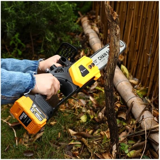 Благодаря бесщеточному двигателю, пила отличается высокой производительностью, увеличенным сроком службы и низким уровнем шума. Вам больше не придется беспокоиться о сложном обслуживании и неприятном запахе бензина. Просто зарядите аккумулятор и приступайте к работе!
