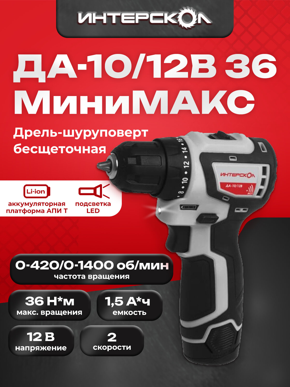 Закажите бесщеточную аккумуляторную дрель-шуруповерт Интерскол ДА-10/12В 36 minimax Li-Ion прямо сейчас и убедитесь в ее превосходных характеристиках сами!