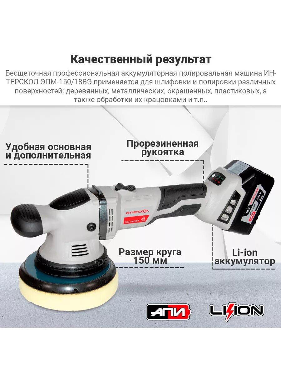В мире ухода за автомобилями и другими поверхностями, качество инструмента играет ключевую роль. Представляем вам бесщеточную аккумуляторную полировальную машину Interskol EPM-150/18ВЭ – инструмент, созданный для тех, кто ценит безупречный результат и комфорт в работе.