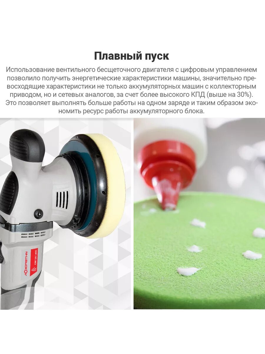 Эта полировальная машина сочетает в себе передовые технологии и надежность, необходимые для профессионального использования. Благодаря бесщеточному двигателю, она обеспечивает высокую производительность, экономичность и долговечность. Отсутствие щеток в двигателе снижает трение, увеличивает КПД и значительно продлевает срок службы инструмента.