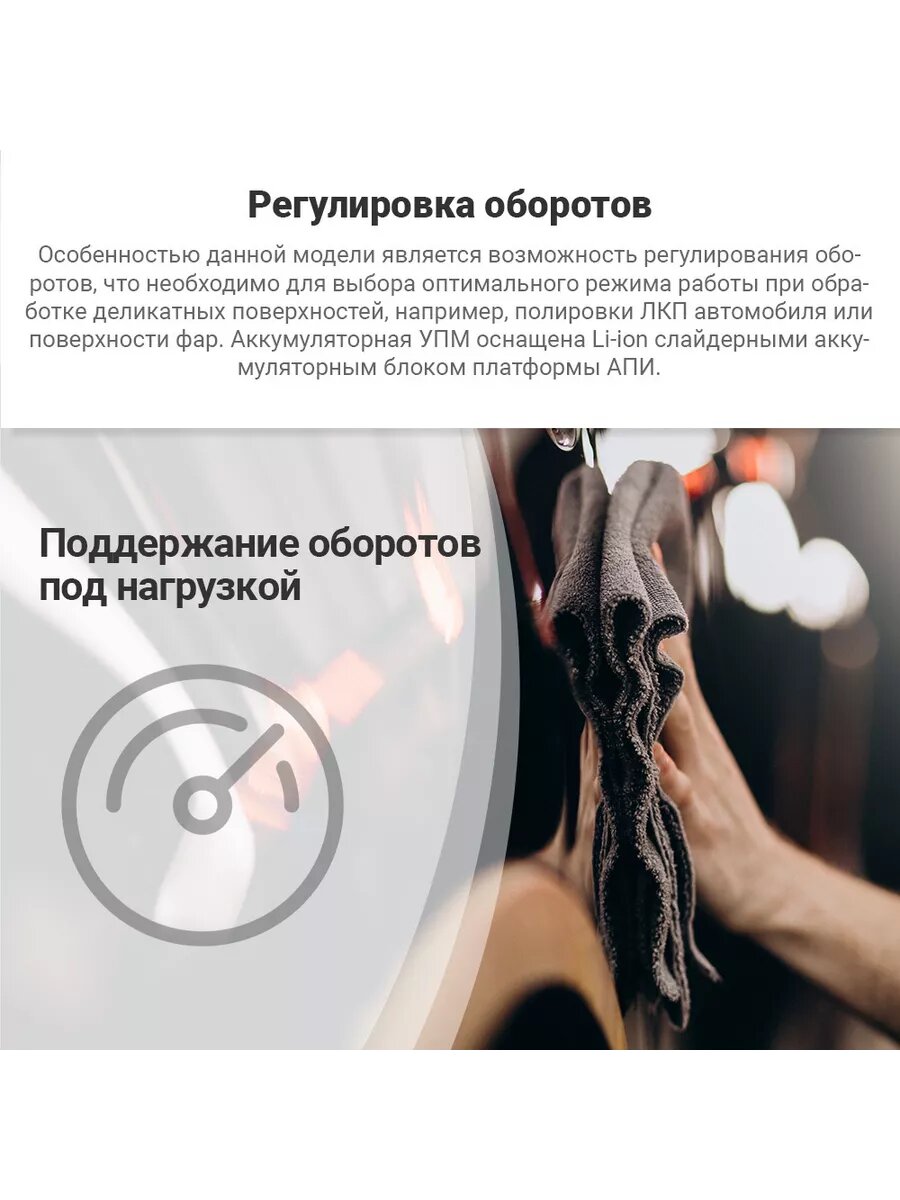 Аккумуляторное питание предоставляет свободу передвижения и позволяет работать в местах, где нет доступа к электросети. Забудьте о запутанных проводах и ограничениях, связанных с их длиной. С этой полировальной машиной вы сможете легко обрабатывать большие поверхности, не беспокоясь о поиске розетки.