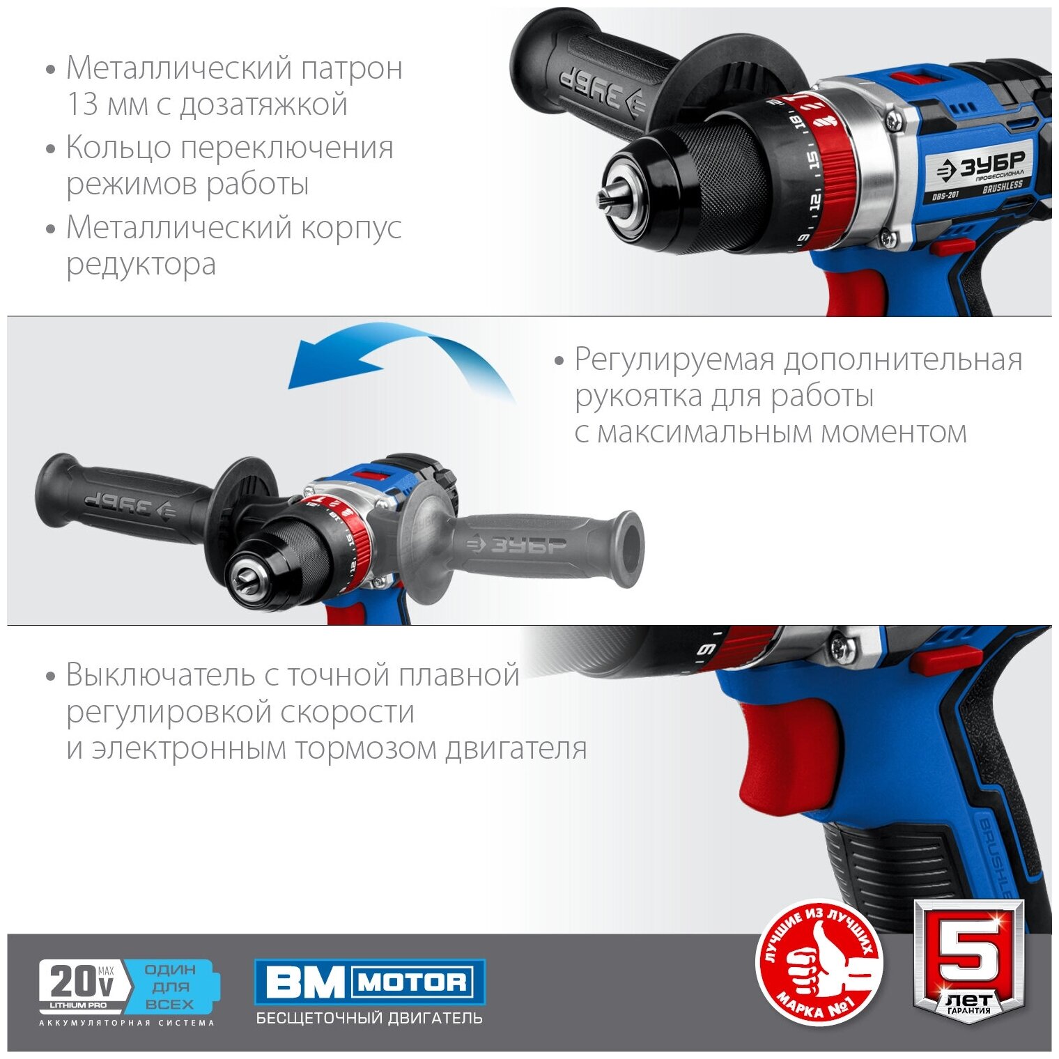 Ищете инструмент, который справится с любой задачей – от сборки мебели до сверления твердых материалов? Бесщеточная ударная дрель-шуруповерт ЗУБР Professional ДБШ-201-22 – ваш идеальный выбор. Этот универсальный инструмент сочетает в себе мощность, долговечность и удобство использования, что делает его незаменимым помощником как для профессионалов, так и для домашних мастеров.