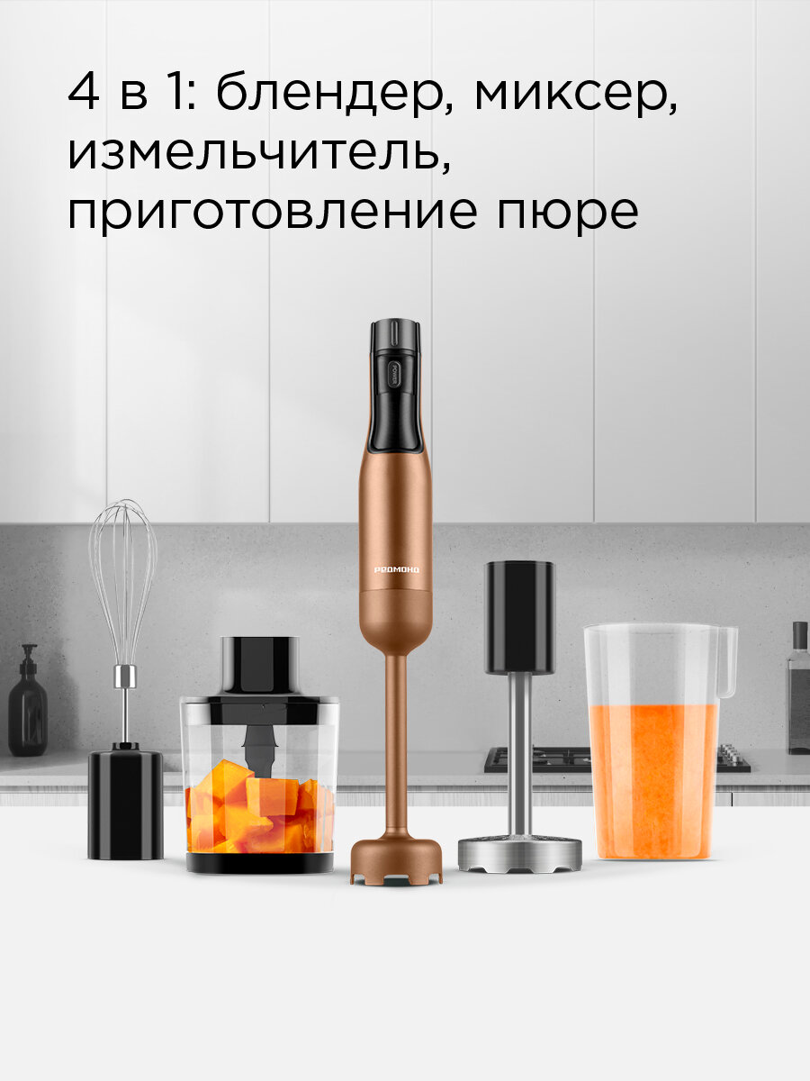 Откройте для себя мир кулинарных возможностей с погружным блендером Redmond BH403! Этот стильный и мощный блендер станет незаменимым инструментом для приготовления самых разнообразных блюд. Элегантный бронзовый цвет и современный дизайн делают его украшением любой кухни.