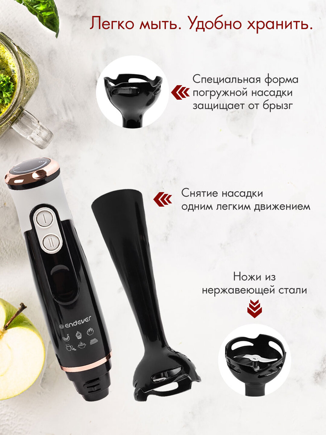 С погружным блендером Endever Sigma 8310 вы сможете значительно сократить время приготовления пищи и воплотить в жизнь самые смелые кулинарные идеи. Забудьте о сложных и громоздких кухонных комбайнах – компактный и многофункциональный блендер станет незаменимым инструментом для создания кулинарных шедевров каждый день.