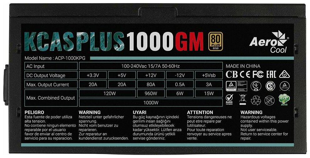 Закажите Aerocool KCAS PLUS 1000W прямо сейчас и обеспечьте своему компьютеру надежное и мощное электропитание!
