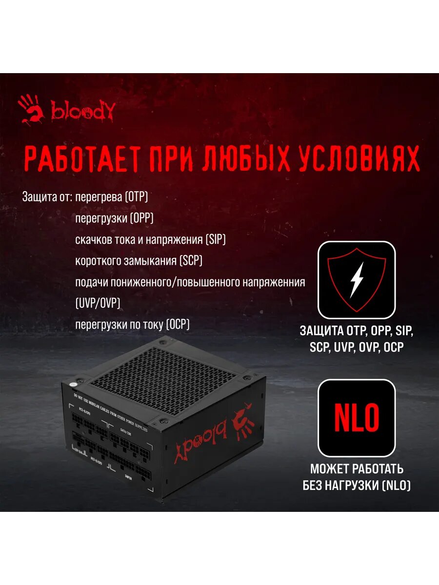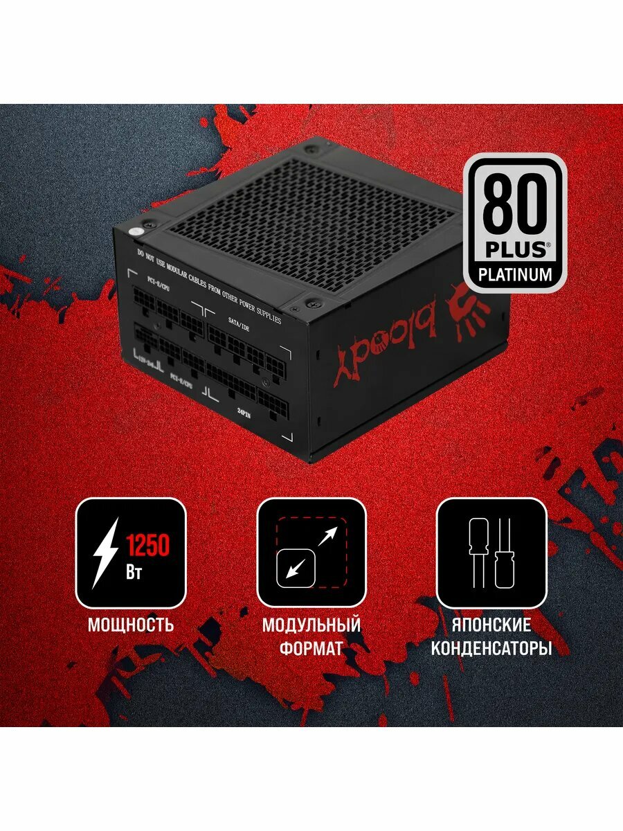 Блок питания BLOODY BD-PS1250P, 1250Вт, 140мм, черный, retail [bd-ps1250p-m]
