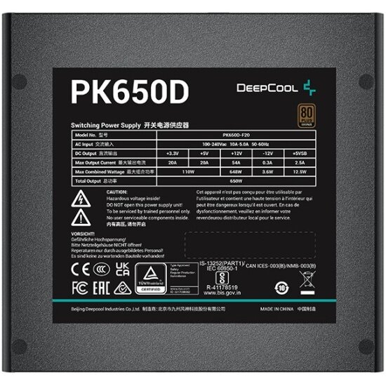 Выбирая Deepcool PK650D, вы выбираете надежность, эффективность и долговечность. Это инвестиция в стабильную работу вашего компьютера, которая позволит вам наслаждаться играми, работать с ресурсоемкими приложениями и не беспокоиться о проблемах с электропитанием. Закажите Deepcool PK650D прямо сейчас и обеспечьте своему ПК надежную основу для бесперебойной работы!
