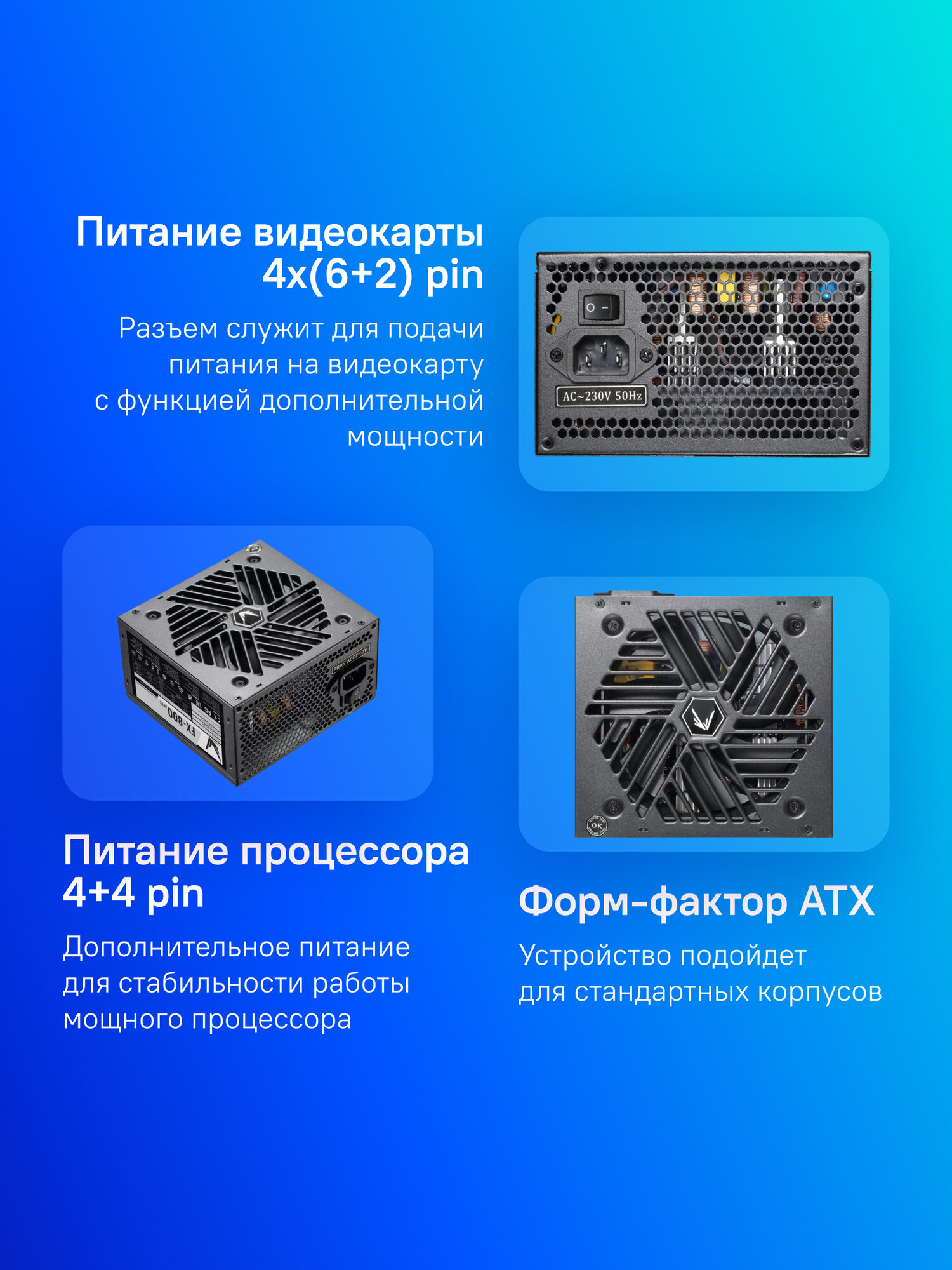 Этот блок питания обеспечивает достаточно мощности для поддержки современных процессоров, видеокарт и других требовательных компонентов. Он спроектирован для обеспечения стабильной и эффективной работы вашей системы, предотвращая перебои и сбои, вызванные недостаточным питанием.