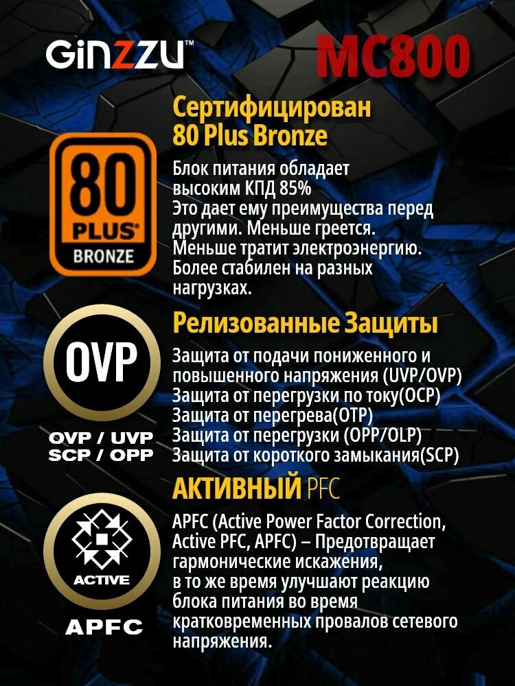 Сделайте выбор в пользу качества и эффективности – выберите модульный блок питания GINZZU MC800 и забудьте о проблемах с питанием вашей системы!