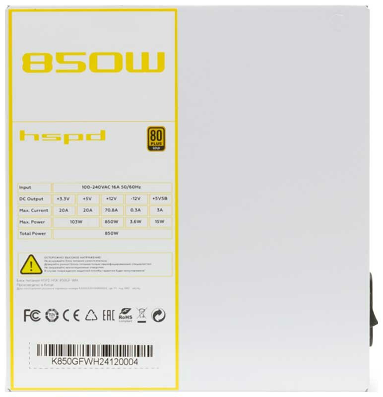 Ищете надежный и эффективный блок питания для вашей игровой или рабочей станции? HSPD 850W Gold ATX 3.1 HSK-850GF WH в белом корпусе – это отличный выбор для тех, кто ценит стабильность и мощность.