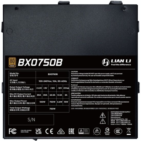 Конструкция блока питания Lian Li RB-PSU-750W разработана с учетом обеспечения оптимального воздушного потока, что способствует эффективному охлаждению компонентов и увеличению срока их службы. Тщательно подобранные компоненты гарантируют стабильную работу и минимальный уровень шума даже при максимальной нагрузке. Вы сможете наслаждаться тихой и комфортной работой своей системы, не отвлекаясь на посторонние звуки.