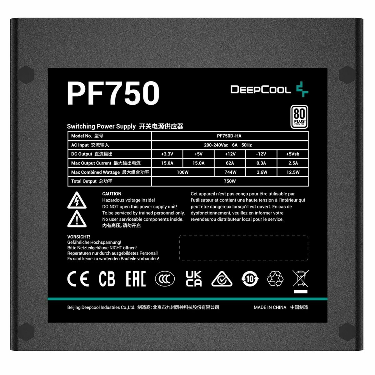 Deepcool PF750 разработан с использованием высококачественных компонентов, что гарантирует его долговечность и надежность. Благодаря продуманной конструкции, он обеспечивает стабильное напряжение и защиту от перегрузок, коротких замыканий и перегрева.