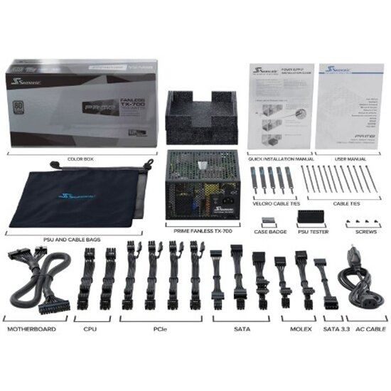 Выбирая Seasonic Prime Fanless TX-700, вы выбираете качество, инновации и бесшумную работу. Поднимите свою систему на новый уровень с этим высококлассным блоком питания!