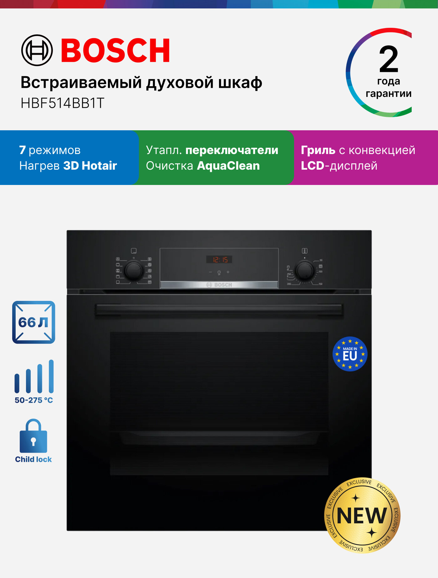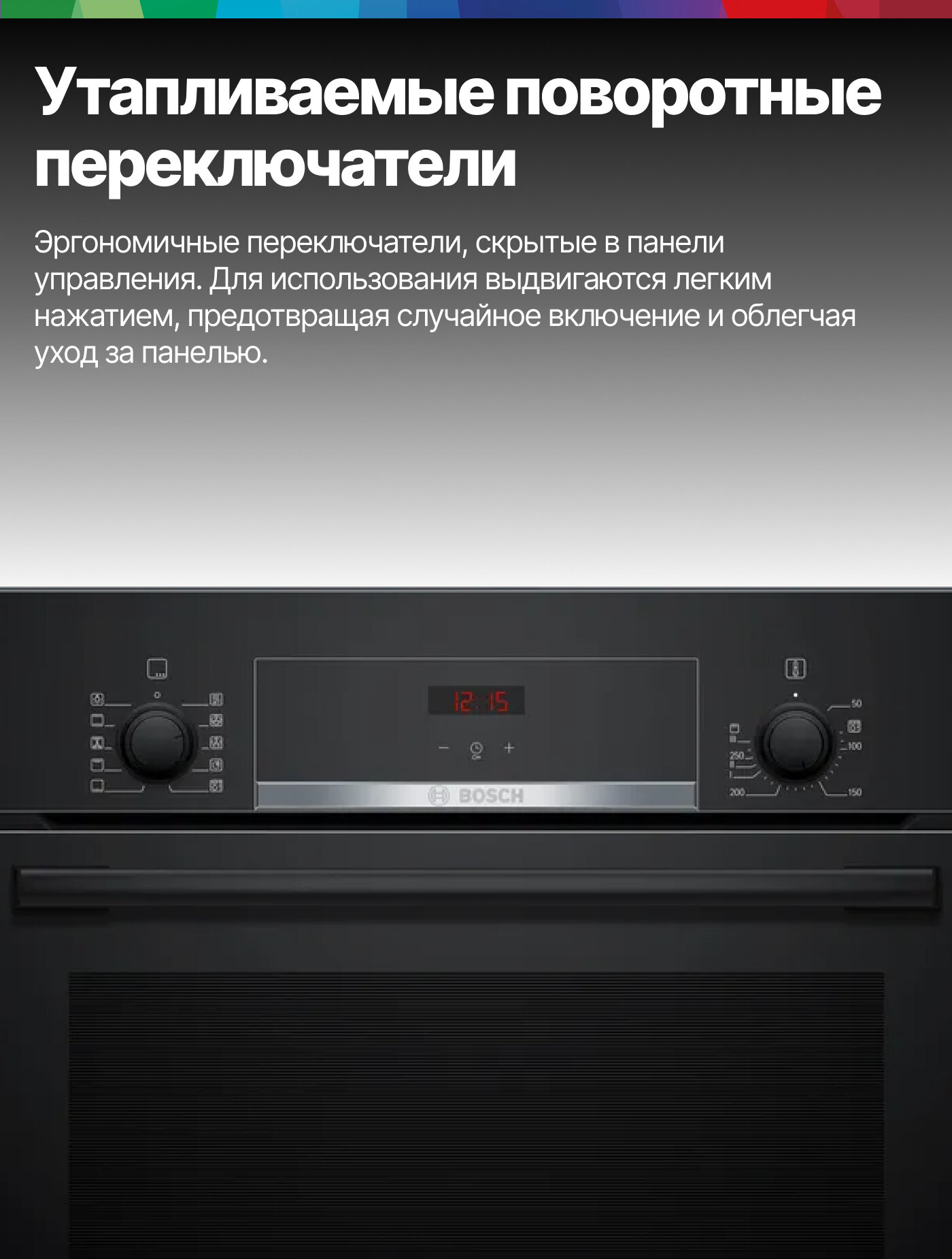 Современный дизайн в черном цвете идеально впишется в любой стиль кухни, а удобные утапливаемые переключатели придают ему лаконичность и практичность. Благодаря разнообразию режимов, вы сможете легко подобрать оптимальный для каждого блюда – от сочного жаркого до нежной выпечки.
