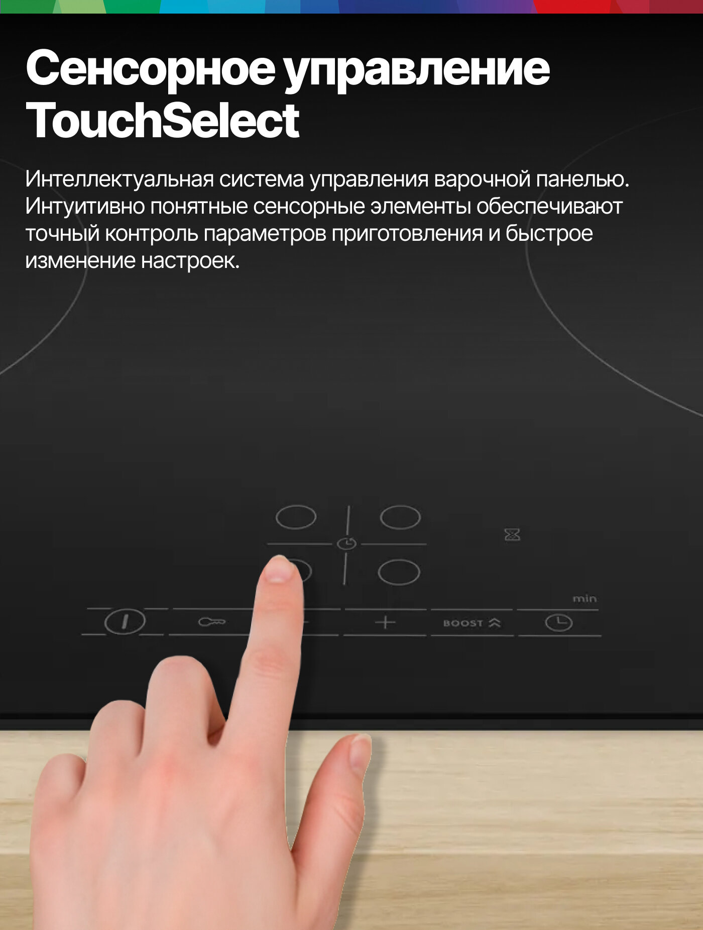 Элегантный и лаконичный дизайн этой варочной панели идеально впишется в любой современный интерьер кухни. Гладкая черная поверхность не только выглядит стильно, но и легко очищается от загрязнений, что значительно упрощает уход за панелью.