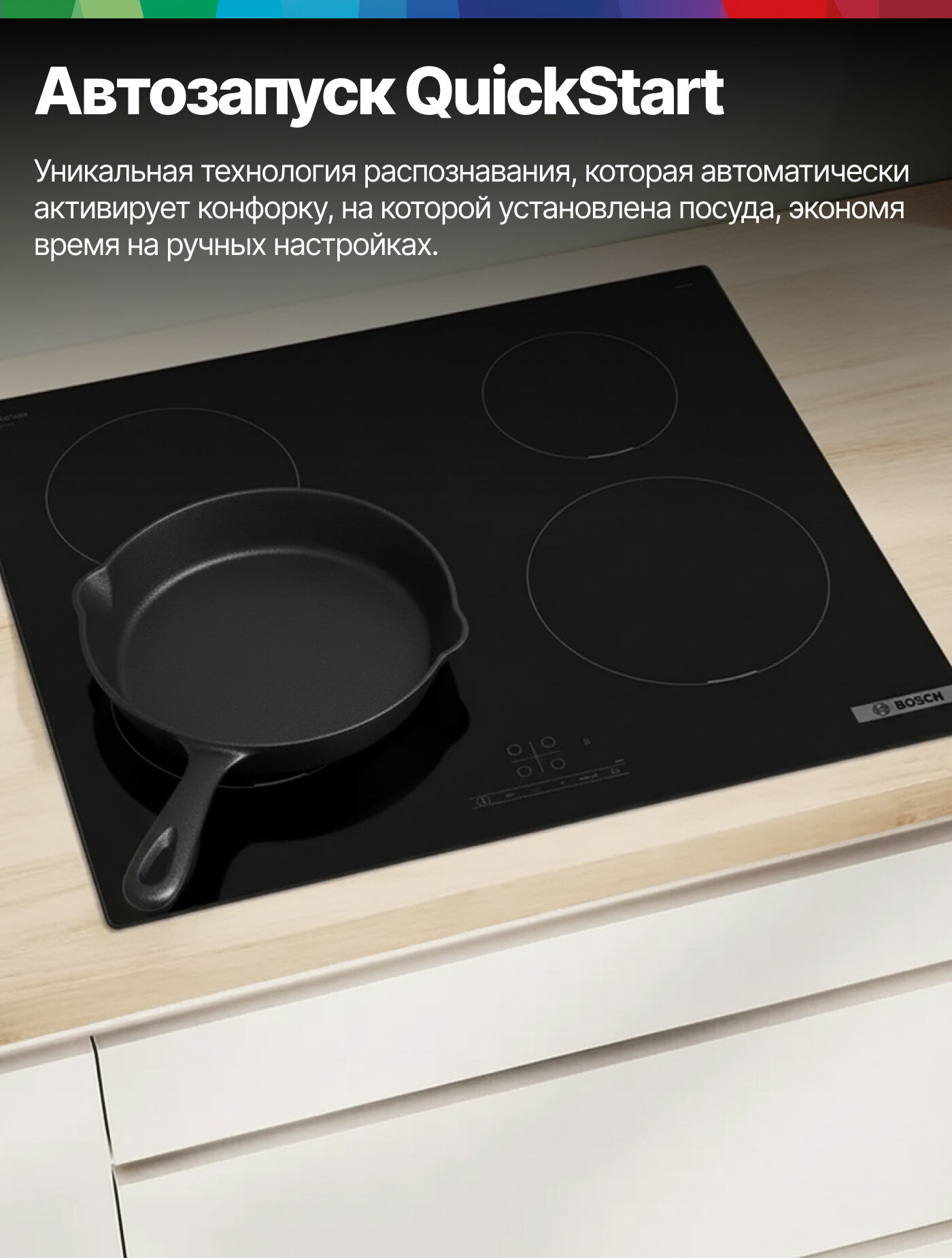 Безопасность – один из главных приоритетов Bosch. Индукционная технология нагревает только посуду, а поверхность панели остается относительно холодной, что снижает риск ожогов. Кроме того, панель оснащена функциями защиты от перегрева и автоматического отключения, что делает ее использование максимально безопасным.