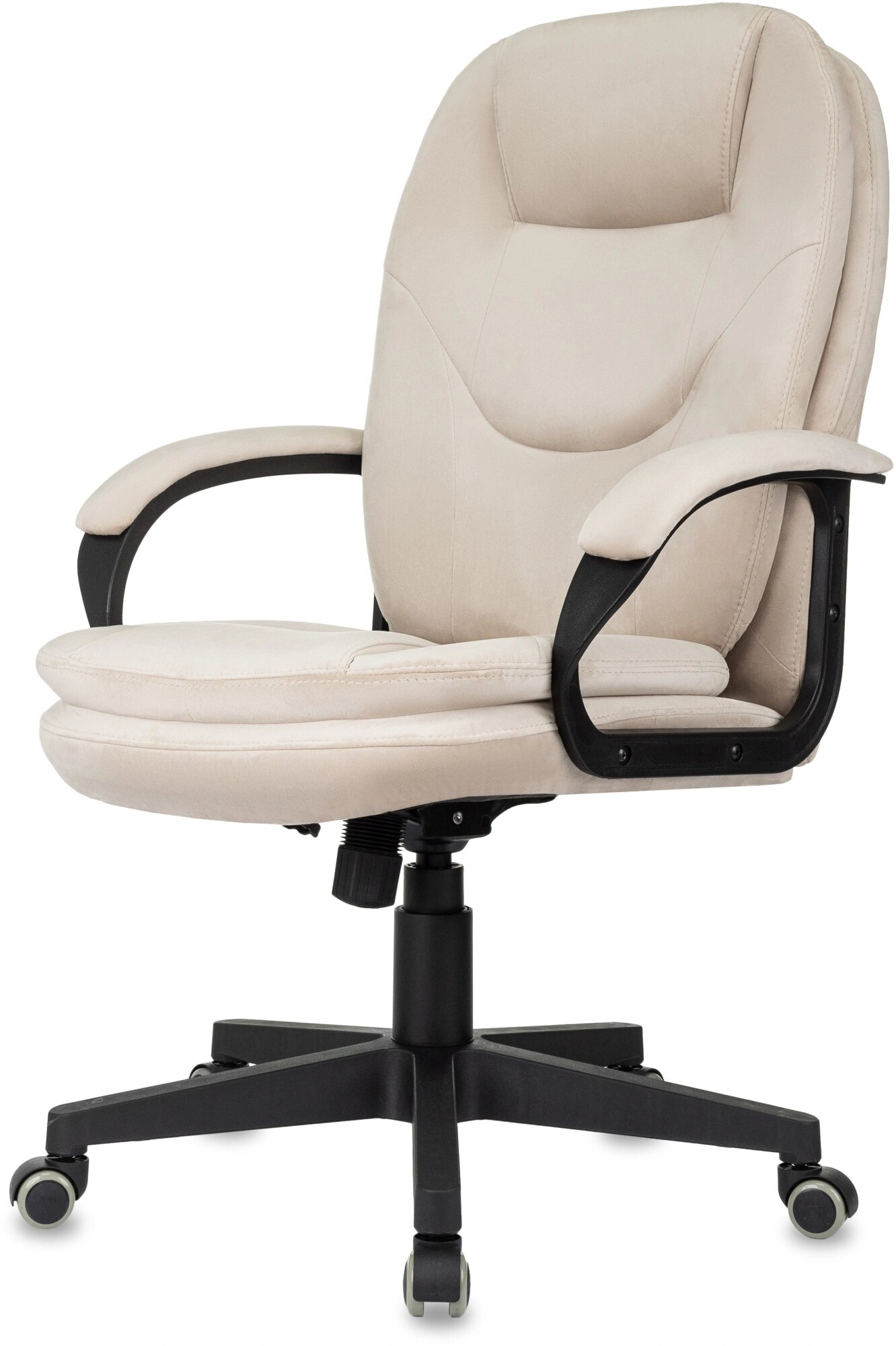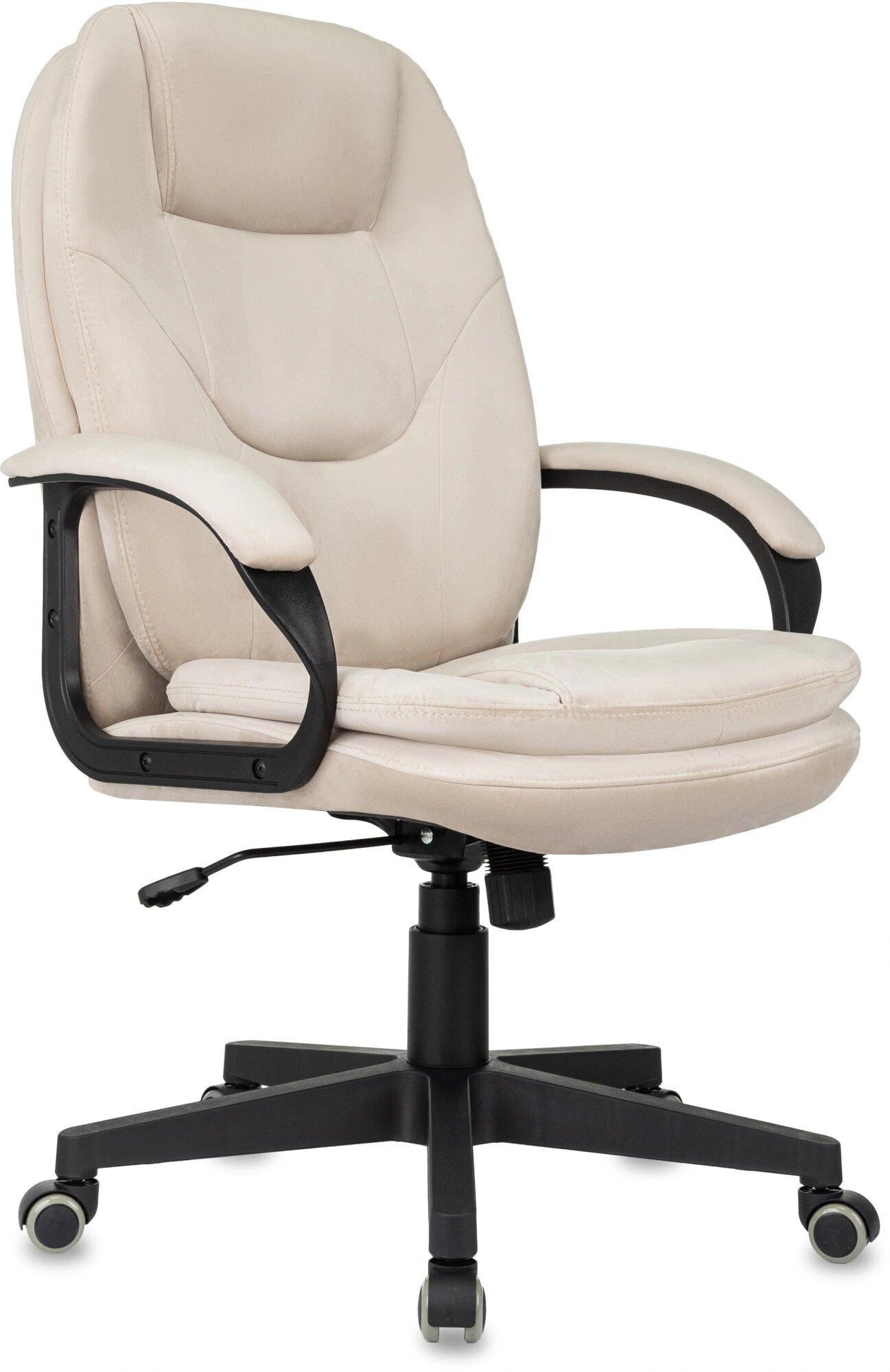 Светло-бежевая обивка кресла добавляет офису атмосферу уюта и респектабельности. Этот цвет легко вписывается в любой интерьер, подчеркивая вкус и статус руководителя.
