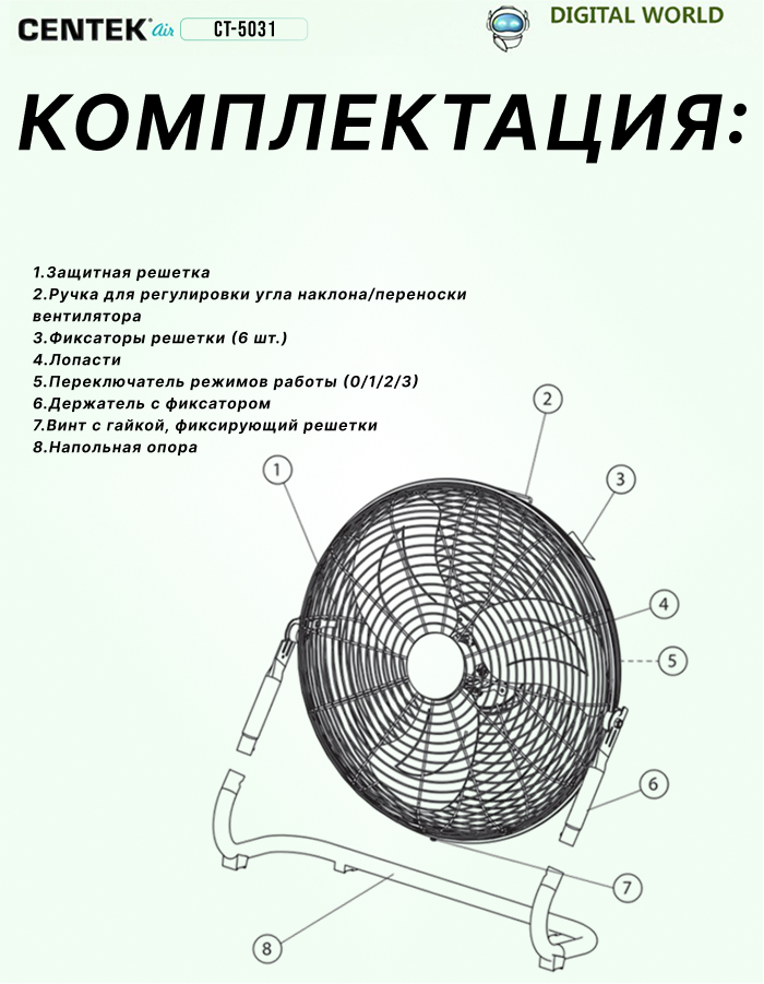 Centek CT-5031 – это не просто вентилятор, это стильный элемент интерьера. Его современный дизайн гармонично впишется в любую обстановку, добавляя в нее нотку свежести и элегантности. Прочные материалы и надежная конструкция гарантируют долгий срок службы, а удобное управление делает его простым и приятным в использовании.