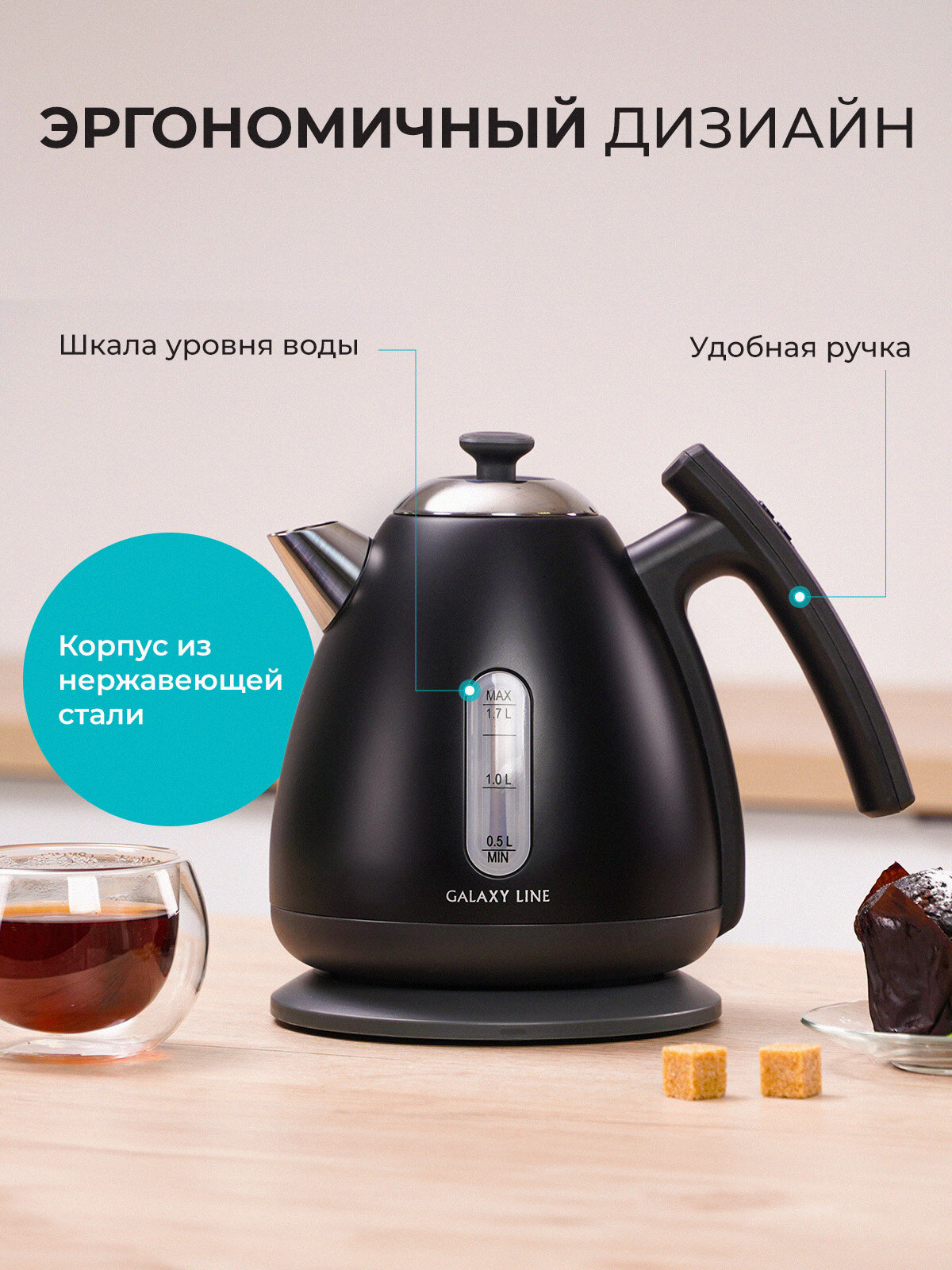 Электрочайник Galaxy Line GL0343 – это не только функциональное устройство, но и стильный элемент интерьера. Его современный дизайн гармонично впишется в любую кухонную обстановку, подчеркивая ваш вкус и внимание к деталям.