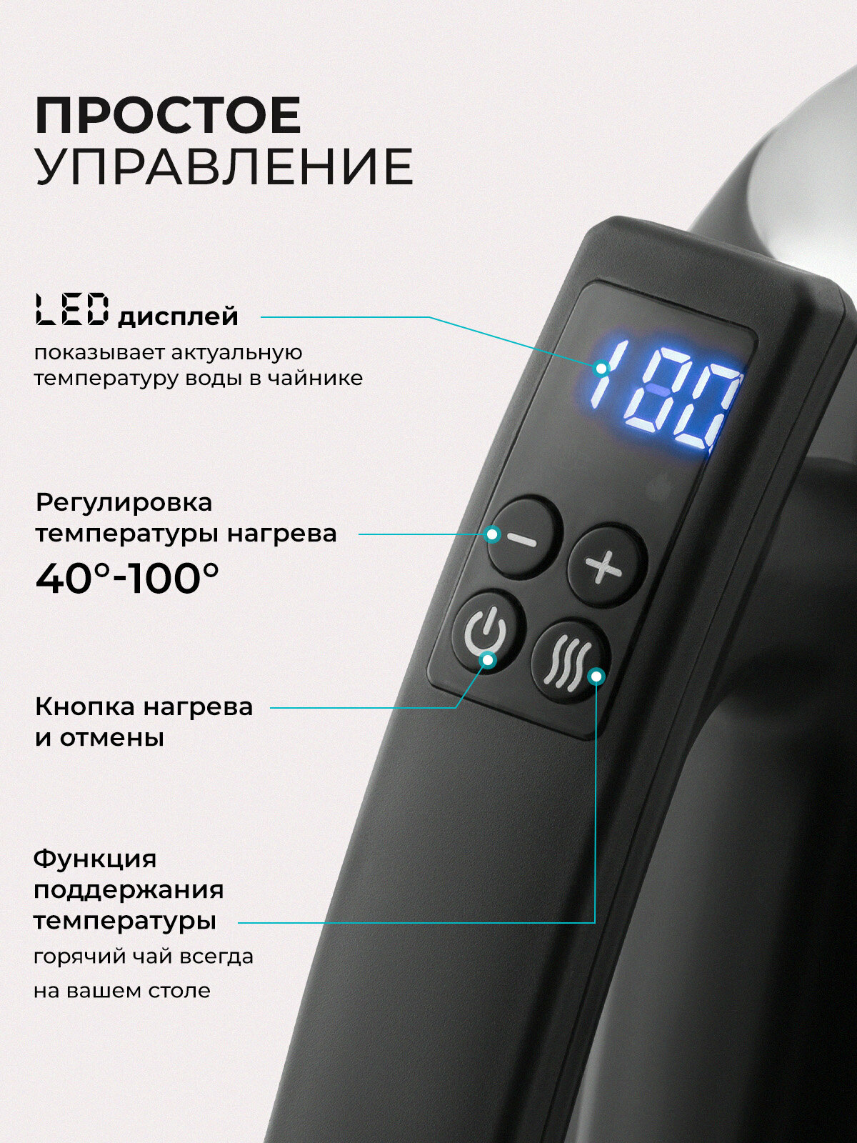 Этот электрочайник создан для того, чтобы сделать процесс приготовления горячих напитков максимально простым и удобным. Благодаря своей мощности, он быстро нагревает воду, экономя ваше время и позволяя насладиться чашкой ароматного чая или кофе в считанные минуты.