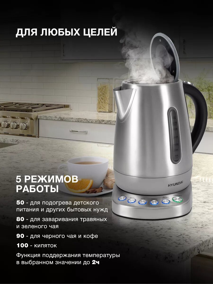 Этот чайник - прекрасный подарок для себя и своих близких! Подарите комфорт и наслаждение от любимых напитков! HYUNDAI HYK-S7770 – ваш надежный партнер на кухне.