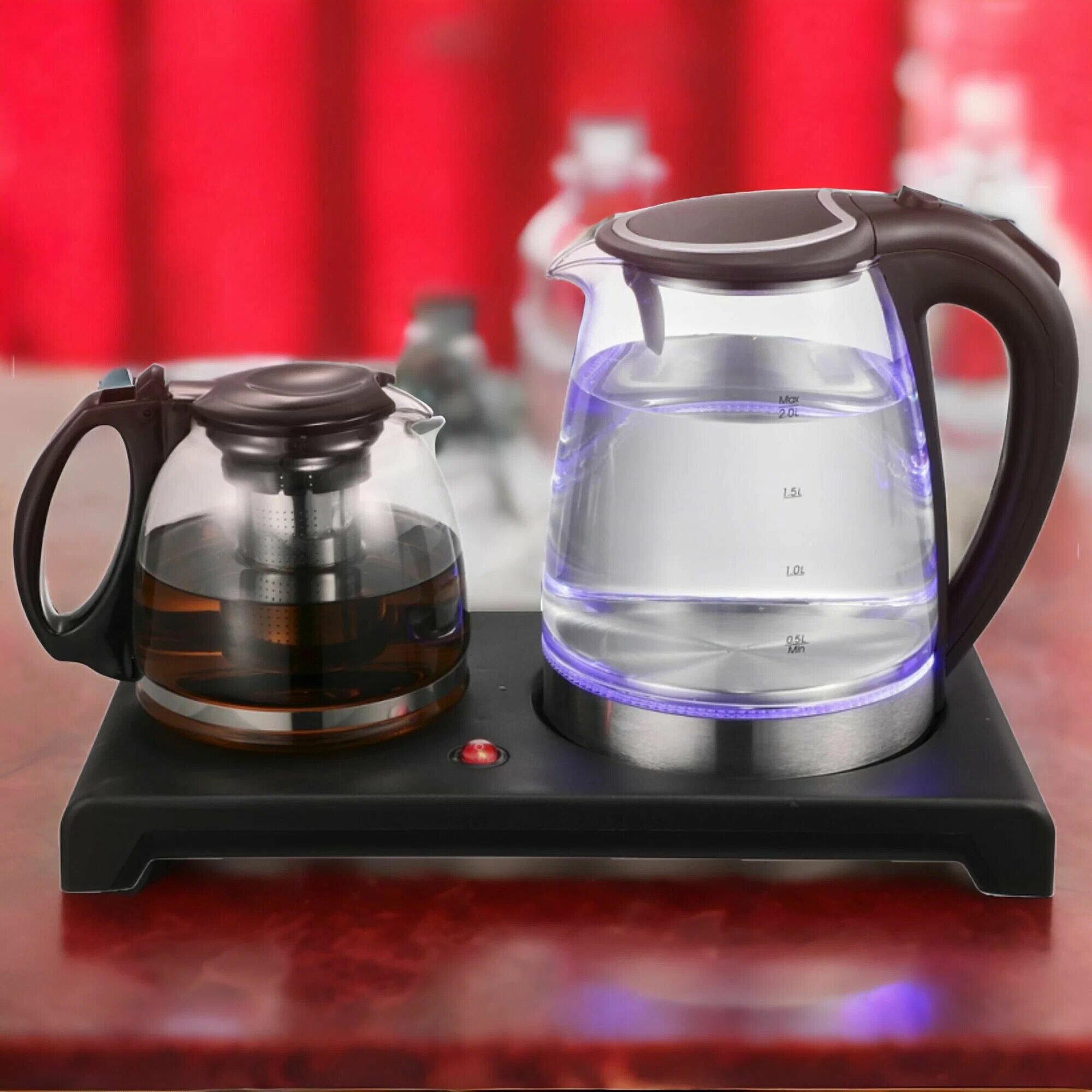Этот набор – это больше, чем просто чайник. Это продуманное решение для тех, кто ценит комфорт и качество. Благодаря своей мощности, он быстро вскипятит воду, а кувшин для заварки позволит вам раскрыть все грани вкуса и аромата вашего любимого чая. Черный цвет придает набору стильный и современный вид, который гармонично впишется в любой интерьер.