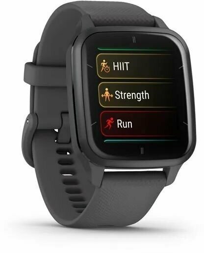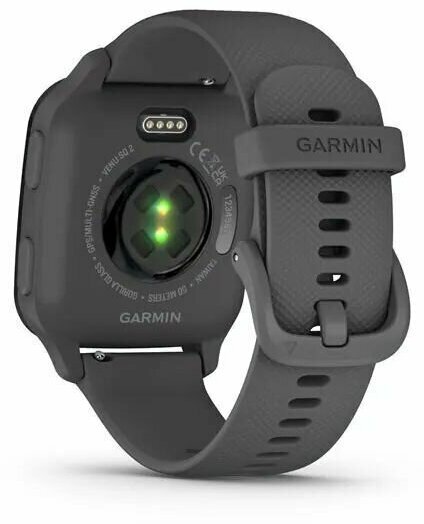 *Тратьте меньше времени на зарядку Батарея устройства обеспечивает до 11 дней работы в режиме смарт-часов и до 26 часов в режиме GPS. Это означает, что вам не придется ставить часы на зарядку каждый день перед сном, и вы сможете получать информацию о здоровье 24 часа в сутки и 7 дней в неделю. *Эй, у вас красивые часы! Привлекательный дизайн смарт-часов Venu Sq 2 подойдет для любой одежды и любой ситуации. Вы можете также использовать настройку Your Watch. Your Way. (Ваши часы. Ваш путь). Благодаря яркому дисплею AMOLED и дополнительному режиму постоянно включенного экрана вы сможете увидеть всю нужную информацию с одного взгляда. *Специально для активного образа жизни Устройство включает прочное стекло Corning Glass 3, легкий алюминиевый ободок вокруг экрана и удобный силиконовый ремешок. Эти смарт-часы просто созданы для вашего активного образа жизни. *Пульсометр на запястье *Монитор энергии Body Battery *Улучшенное наблюдение за сном и баллы сна *Отслеживание стресса *Функция Health Snapshot Запишите 2-минутную спортивную сессию для определения ключевых показателей – частоты пульса, вариабельности частоты пульса, данных пульсоксиметра, дыхания и стресса. После этого с помощью приложения Garmin Connect на совместимом смартфоне можно создать отчет на основе этих данных. *Отслеживание параметров женского здоровья *Пульсоксиметр *Спортивный возраст Данная функция на основе вашего биологического возраста, количества интенсивной нагрузки за неделю, частоты пульса в состоянии покоя и индекса массы тела или процента телесного жира определяет, является ли ваш организм моложе или старше реального возраста. Кроме того, вы можете получить советы по снижению спортивного возраста. *Дыхательные упражнения *Отслеживание водного баланса *Отслеживание дыхания *Встроенные спортивные приложения Устройство предлагает более 25 предзагруженных занятий с использованием GPS и для закрытых помещений, включая ходьбу, бег, велоспорт, плавание в бассейне, гольф, интервальные тренировки HIIT, теннис и многое другое. *Предзагруженные тренировки *Создание тренировок Используя более 1600 упражнений, создавайте собственные тренировки в приложении Garmin Connect на совместимом смартфоне. Затем загружайте эти тренировки на часы для фитнеса. *Интервальные тренировки HIIT Используйте данный профиль занятий с различными таймерами для отслеживания тренировок HIIT, включая AMRAP, EMOM, Tabata и пользовательские тренировки. Задавайте количество подходов, интервалы нагрузки/ отдыха и прочее. *Тренер Garmin Воспользуйтесь услугами личного бесплатного тренера, который поможет вам подготовиться к следующему забегу на дистанцию 5 км, 10 км и полумарафон. *Отслеживание спортивной формы *Время интенсивных занятий *Оповещения от смартфона Получайте оповещения об электронных письмах, текстовых сообщениях и предупреждениях на экране часов при сопряжении со смартфоном Apple или Android. Пользователи телефонов Android могут также отмечать на текстовые сообщения. *Функции безопасности и слежения *Бесконтактные платежи Garmin Pay *Экономичный режим батареи Включив эту настройку, вы сможете продлить период работы часов от батареи. *Водонепроницаемость Если вы собираетесь провести день в воде, на воде или рядом с водой, не сомневайтесь – берите часы с собой. Приложение Garmin Connect