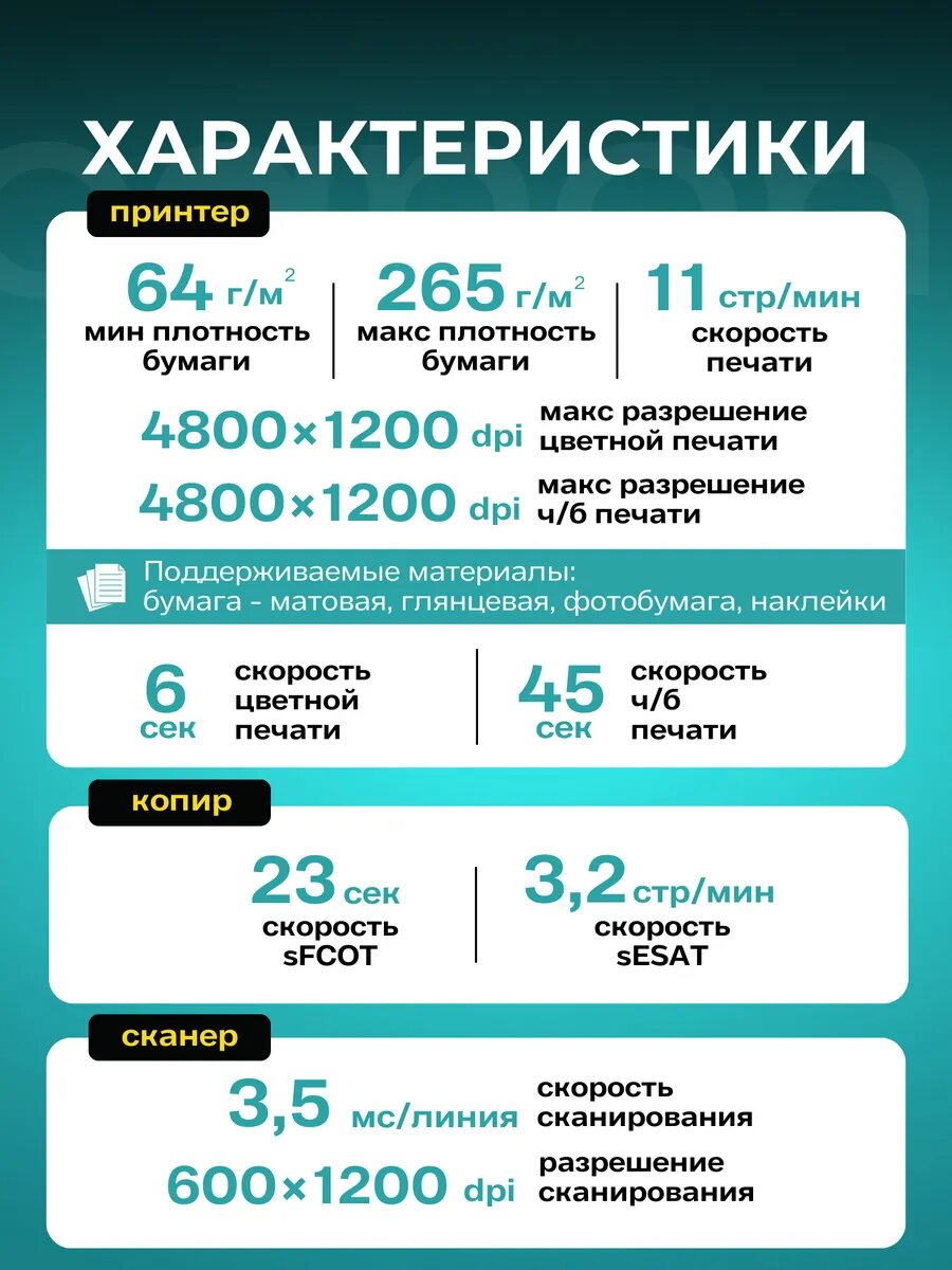 Беспроводное подключение по Wi-Fi позволяет печатать с любого устройства в вашей сети – компьютеров, смартфонов и планшетов. Забудьте о проводах и наслаждайтесь свободой печати из любого уголка дома или офиса.