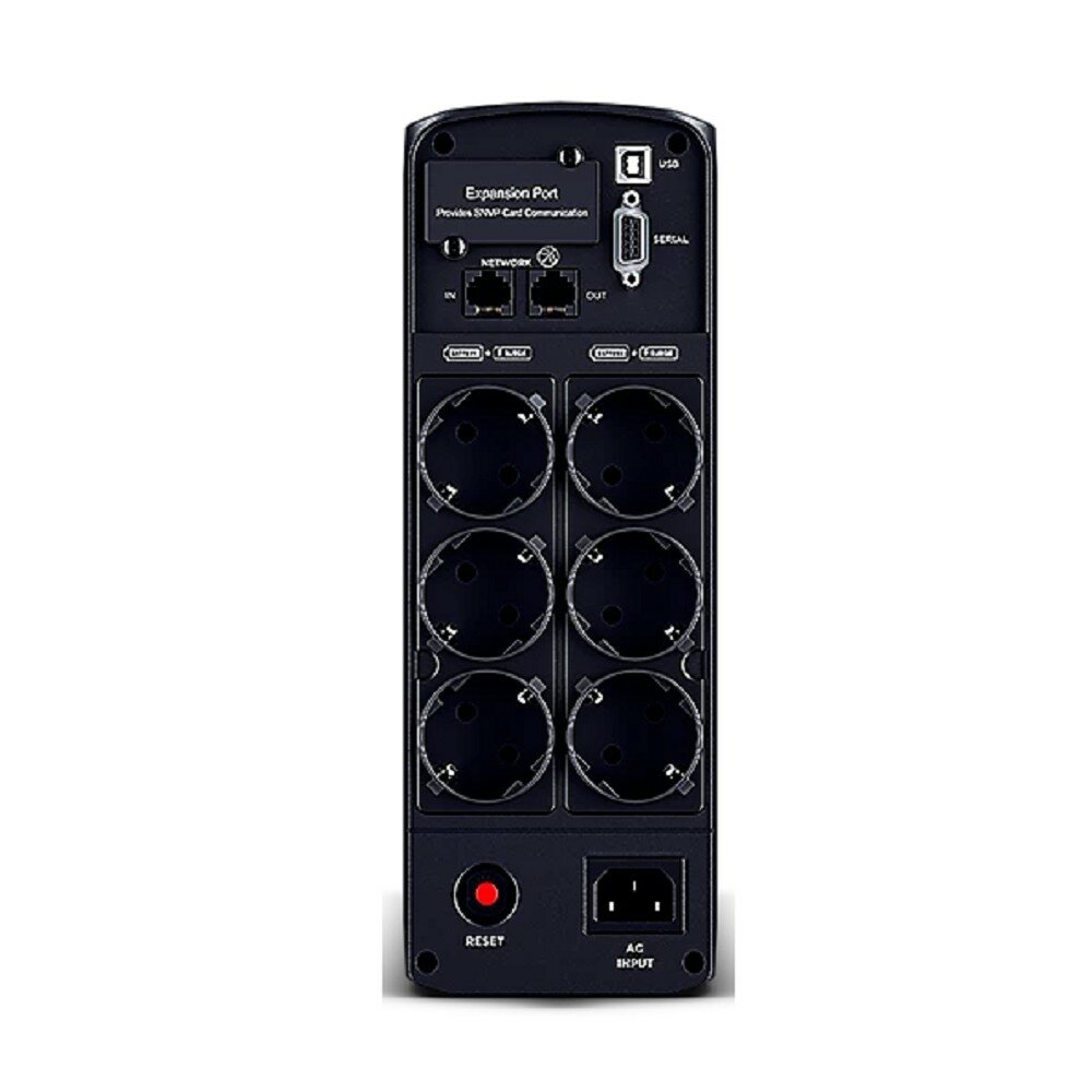 Благодаря наличию нескольких розеток, вы сможете подключить все необходимые устройства, от системного блока и монитора до периферийного оборудования. Кроме того, ИБП оснащен портами USB, RJ11/RJ45 и RS232 для защиты от скачков напряжения в телефонной линии, сети Ethernet и последовательного порта.
