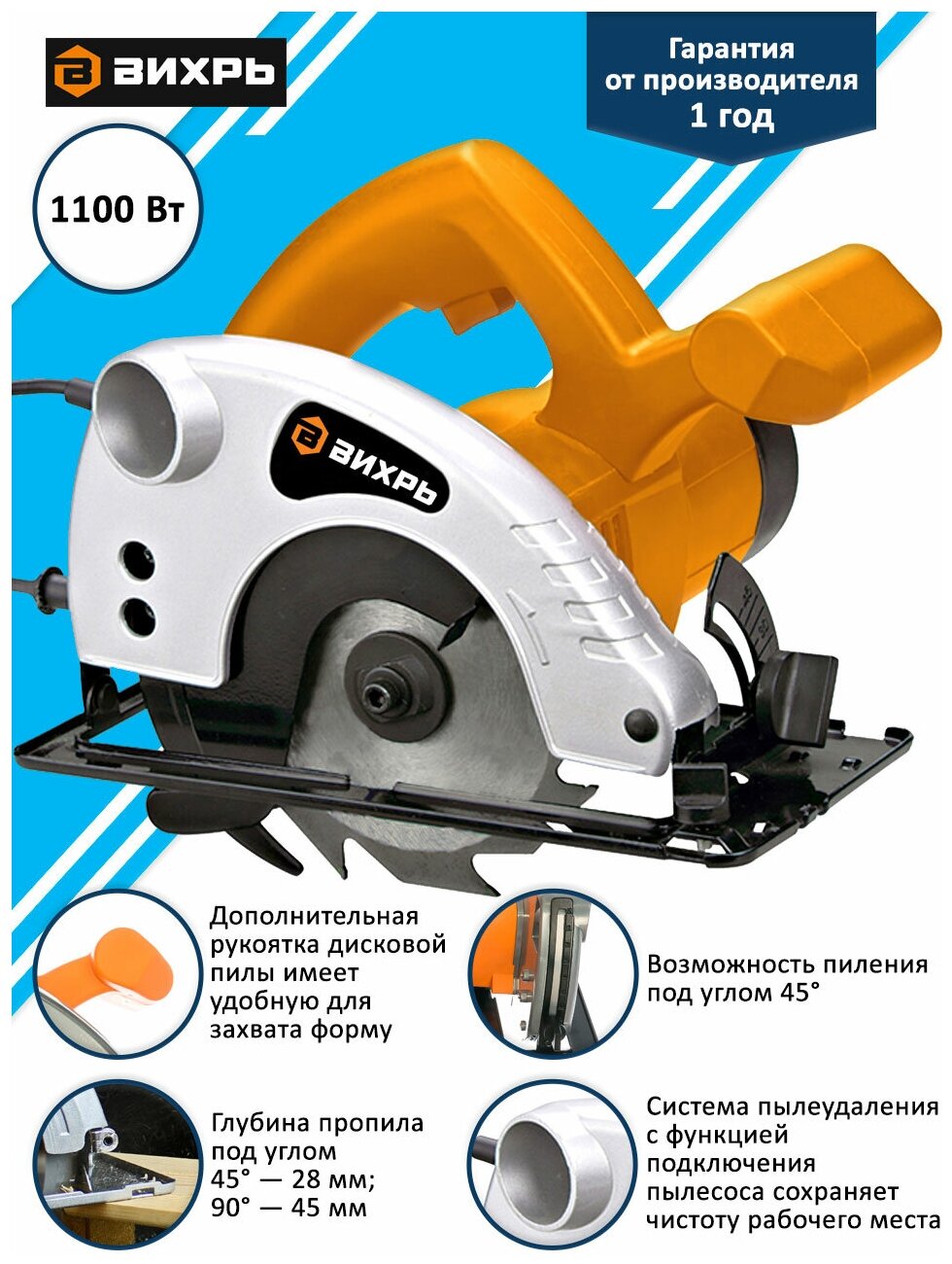 Ищете надежный и мощный инструмент для распиловки древесины? Дисковая циркулярная пила Вихрь ДП-1401100 – отличный выбор как для домашнего мастера, так и для профессионала!