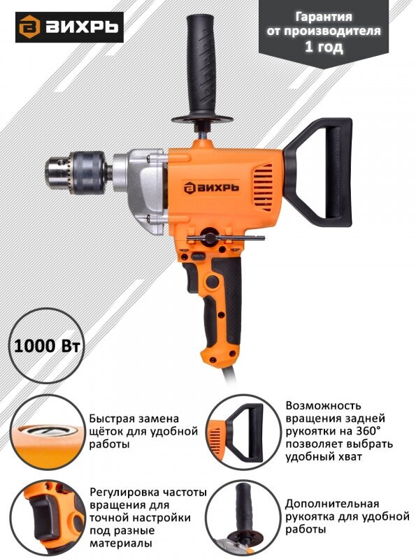 Ищете надежный и мощный инструмент для смешивания строительных растворов и других материалов? Дрель-миксер ВИХРЬ Д-1000М станет вашим незаменимым помощником на строительной площадке и при проведении ремонтных работ. Этот инструмент сочетает в себе функциональность дрели и миксера, позволяя быстро и качественно перемешивать даже самые густые смеси.