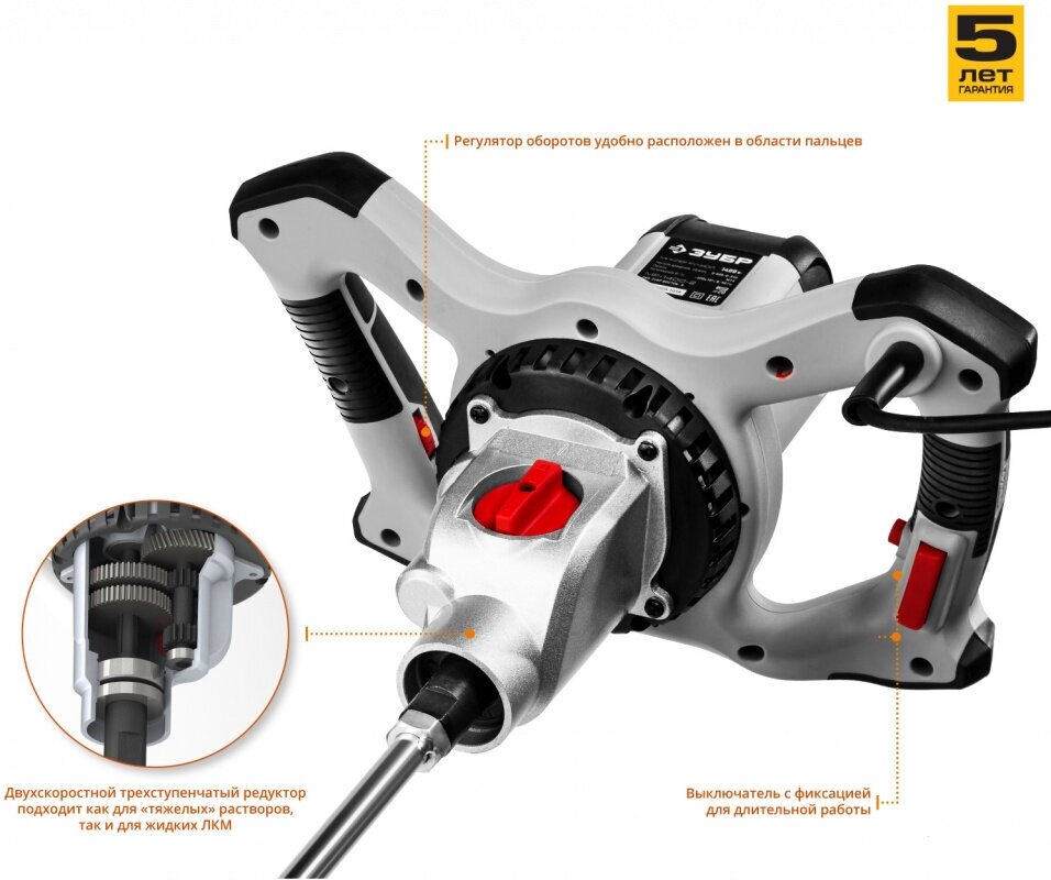 Представляем вашему вниманию дрель-миксер ЗУБР МР-1400-2 – надежный и мощный инструмент, предназначенный для выполнения широкого спектра строительных и отделочных работ. Этот профессиональный миксер идеально подходит для перемешивания различных строительных смесей, красок, лаков, клеев и других материалов, требующих однородной консистенции.