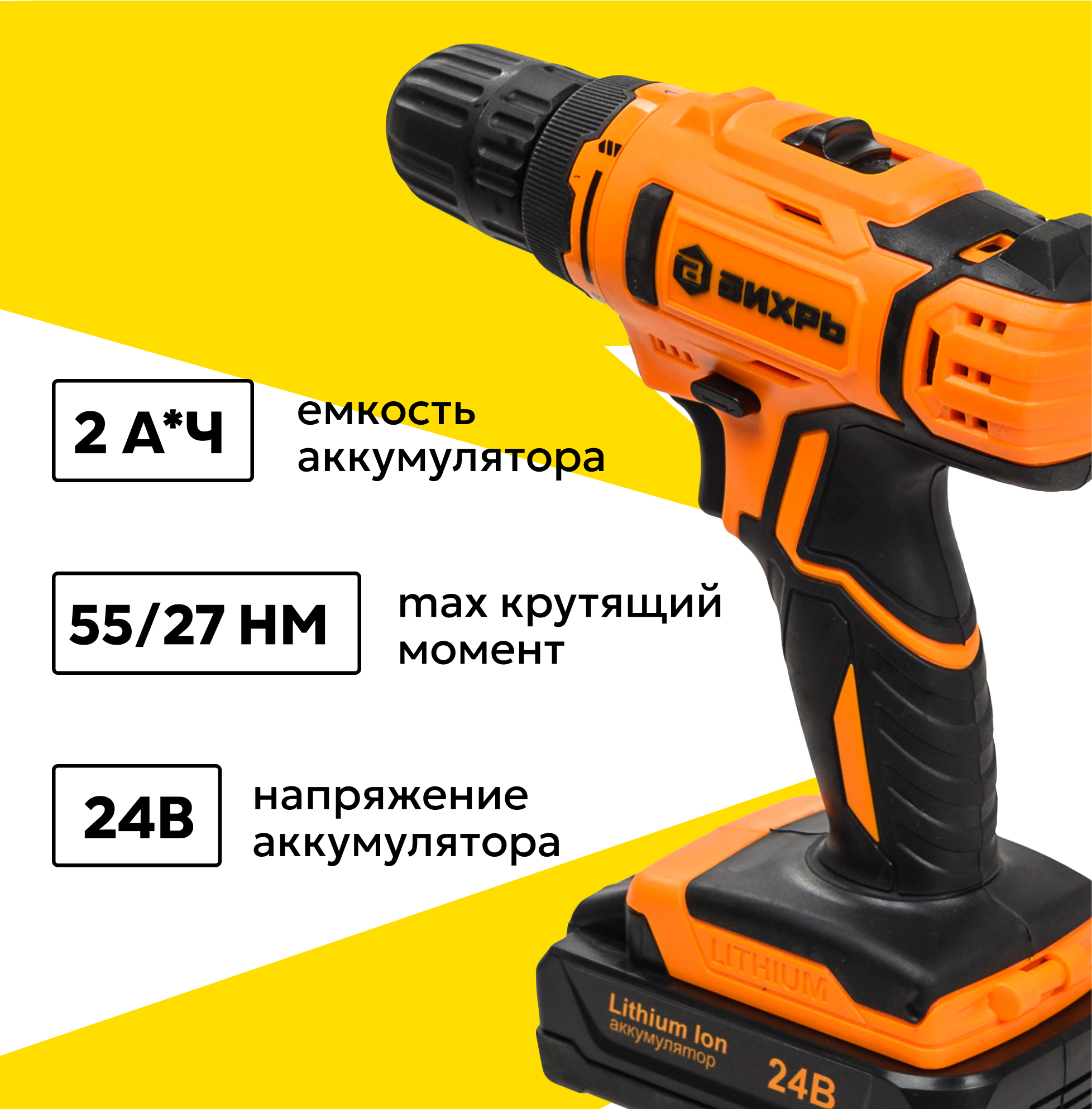 Выберите аккумуляторную дрель-шуруповерт ВИХРЬ ДА-24Л-2К и получите надежный инструмент, который прослужит вам долгие годы! Этот инструмент станет отличным выбором как для опытных мастеров, так и для начинающих любителей.