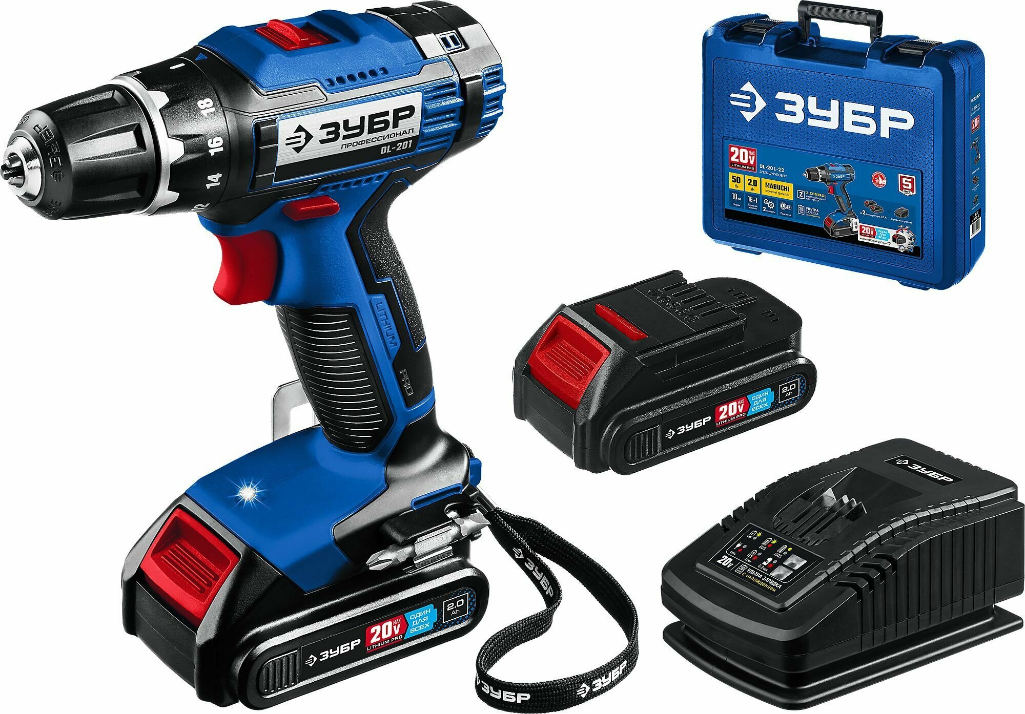 Дрель-шуруповерт аккумуляторная ЗУБР Профессионал ДЛ-201-22 с 2 АКБ и ЗУ